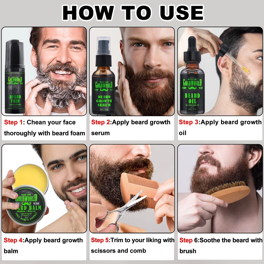 Beard Kit Beard Grooming Kit w/Beard Wash/Shampoo Beard Oil Balm Brush Comb Scissor Bag e-Book Christmas Stocking Stuffers Gifts Ideas for Men Him Dad Boyfriend Husband Mens 【BEARD CARE SUPPLEMENTS SET W/ EXTRA BEARD Serum】2022 Upgraded premium beard kit includes Beard Foam,Beard Serum,Beard Oil,Balm,wooden Comb,Scissor,Brush,Travel Bag,E-Book.Our beardserum is formulated with essential vitamins and proteins to help grow facial hair stronger,faster and healthier,you can see amazing results in a month. 【After Shave Foam/Shampoo】Unlike those conmom beard shampoo, you will save the hassle of adding water and rubbing with this beard foam, just dispense 2 pumps and distribute evenly through beard.Deodorizes your beard and absorbs quickly helping to tame,control, clean and reduce itch & beardruff, Instantly makes your beard appear thicker,keeps beard moisturized. Rub foam into the skin to nourish hair at the roots to help facial hair grow faster and thicker. 【Beard Softener Oil and Beard Balm】: Made from 100% pure natural Ingredients like Argan oi,Vitamin E,Jojoba oil which promote beard grow faster,thicker and fuller,Moisturize the scalp,clean beard follicles and remove dandruff,protecting the healthy hair follicles to absorb nutrients. Tame beard w/ long term nourishment.The light sweet orange scented make you stand out from the crowd. 【Beard Buddy Comb and Brush Trimming Scissors】: The dual sided comb is anti-static, made of high quality sandal wood offering the best rapid grooming experience with both its fine and coarse teeth for different hair types.The boar bristle beard brush is Pocket-size, fits perfectly in your jeans' pocket or bag pocket,you can pull through oils,balms,softener,serum and any stuff or groom your facial hair in anytime,anywhere.The stainless steel sharp scissor gives best trimming experience. 【Guide Ebook and Storage Bag】: This e-book summarizes the experience of tens of thousands of bearded men, no need to look anymore, here is how to quickly grow and maintain beards.The storage bag is made of environmentally friendly materials and makes it easy to take on the road, or just keep an extra kit in the office.Perfect as a unique romantic gifts for Dad husband boyfriend mens boys on christmas,birthday,fathers day,valentines day. Shipping We offer FREE shipping on all orders! We ship within Three business days of payment, usually sooner. We use a selection of shipping services such as UPS, FedEx, USPS etc. We only ship to the lower 48 states, no APO/FPO addresses or PO Boxes allowed. Local pickups and combined shipping options are not provided at this time. Return You can return a product for up to 30 days from the date you purchased it. Any product you return must be in the same condition you received it and in the original packaging. Please keep the receipt. Payment We accept payment by any of the following methods: PayPal Please pay as soon as possible after winning an auction, as that will allow us to post your item to you sooner! Feedback Customer satisfaction is very important to us. If you have any problem with your order, please contact us and we will do our best to make you satisfied. Contact Us If you have any queries, please contact us via ebay. We usually respond within 24 hours on weekdays. Please visit our eBay store to check out other items for sale! Thank you for shopping at our store.