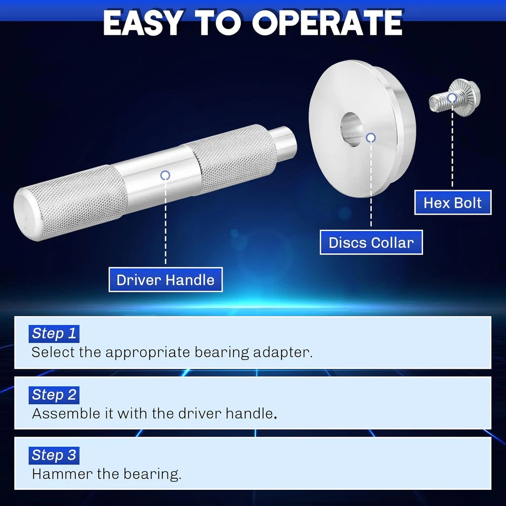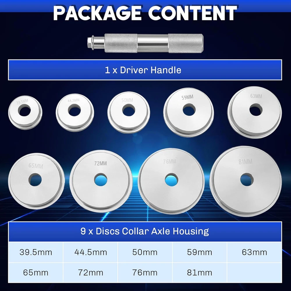 Store New Arrivals Add to Favorite View Feedback Contact Bearing Press Kit | 10Pc Bearing Race and Seal Driver Set with a Driver Handle and 9 Discs Collar Axle Housing, Universal Tool for Bearing Races and Seals in Automotive Wheel Hubs Description Item model number MSP-1129-01 Color Silver Country of Origin China Manufacturer Part Number MSP-1129-01 Item Weight 2.94 pounds Model bearing press kit Package Dimensions 9.61 x 6.61 x 3.62 inches 【Effortless Installation】 weyleity's 10-piece bearing press kit simplifies the installation of bearing races and seals, ensuring a quick and easy process without any damage to the axle housing. 【Durable Construction】 Crafted from heavy-duty aluminum alloy with a corrosion-resistant coating, our seal installer set is built to last. Experience exceptional strength and endurance, even under demanding usage. 【User-Friendly Design】 The knurled driver handle provides a secure, nonslip grip for precise control. Laser engravings on each driver collar are clearly marked, allowing you to swiftly identify and select the right size. 【Wide Application】 Our bearing race and seal driver set boasts 9 bearing adapters covering a range of sizes, making it suitable for various vehicles. It's a comprehensive solution for your mechanic needs. 【Compact and Portable】 With a convenient storage case, this bearing and seal driver set is easily portable. Keep everything organized and ready to go, making it the perfect companion for your working needs. Product Description Details and Features Premium Quality Forged from high-strength aluminum, our set ensures extra durability, a long service life, and won't mark the bearings. Easy to Use Simply select the correct bushing, align, and pound in/out. This universal aluminum bush drive seal kit makes race seal installation a breeze. Broad Compatibility With discs collar axle housing of 9 different sizes, it fits standard raceways used in most wheel bearing applications. Laser Seal Engraving Laser seal engraving has excellent durability and can resist the erosion of harsh environments such as oil stains, water stains, and chemicals. More weyleity Bearing Pullers Tools Add to Cart Add to Cart Add to Cart Add to Cart Add to Cart Add to Cart Customer Reviews 4.6 out of 5 stars 12 4.8 out of 5 stars 14 4.8 out of 5 stars 7 3.9 out of 5 stars 13 4.2 out of 5 stars 4 — Price $21.59 $ 21 . 59 $13.99 $ 13 . 99 $18.99 $ 18 . 99 $31.99 $ 31 . 99 $42.99 $ 42 . 99 $41.99 $ 41 . 99 Brand weyleity weyleity weyleity weyleity weyleity weyleity Pieces 10PCS 17PCS 3PCS 14PCS 16PCS 52PCS Material Aluminum Alloy Aluminum Cast Steel Chrome-Plated Steel Chrome Molybdenum Steel Carbon Steel Application Automotive Wheel Hubs Motorbikes Wheel Bearings 5/8-18 UNF Slide Hammers Automotive Repair Bearing Removal Remove Wheel Bearings Wtih Storage Case ✔ ✔ ✔ ✔ ✔ ✔ ABOUT US We offer the best prices around on high quality products. Our E-store includes media such as books, movies, music and games while offering electronics, toys, sporting apparel, clothing, tools, general home, garden items and more. SHIPPING We are always working hard to ensure your package arrives as soon as possible. Please understand that some factors like weather, high postal traffic, and the performance of shipping companies are outside of our control. We offer free shipping to the lower 48 states and ship within 2 business days of payment, usually sooner. We do not accept P.O. Boxes. Please provide a physical address. For shipping outside of the continental USA, we only use eBay's Global Shipping Program.The item is shipped to KY and then sent to the rest of the world. International customers are responsible for all duties and taxes. Continue to check out in order to calculate costs for shipping the item to your country. Messages regarding eBay's Global Shipping Program MUST be directed at eBay EXCLUSIVELY. RETURNS We offer a 30-Day Return Policy on items which you are not completely satisfied with. You have the option for a full-refund or an exchange of the item. No returns are available on items shipped outside of the USA. PAYMENT We accept PayPal. CONTACT US This page content is yet to come Please ad us to your favorite seller and visit again later Thank You CUSTOMER SATISFACTION We try our very best to make sure every customer is completely satisfied. If there's a problem, message us! We're happy to help. WE ACCEPT Copyright © 2021 AutoDS. | All Rights Reserved