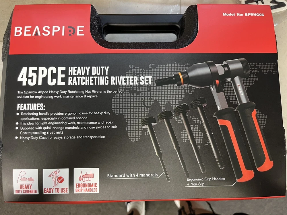 Features & details Units / Measurements are in IMPERIAL Rivet Gun Kit Product information Manufacturer Beaspire Brand Beaspire Model DYGJ Item Weight 5.29 pounds Package Dimensions 13.78 x 10.31 x 3.62 inches Country of Origin China Item model number DYGJ Manufacturer Part Number DYGJ