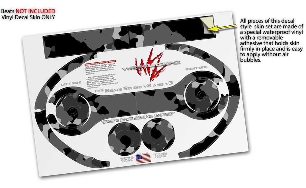 Notice: HEADPHONES NOT INCLUDED Fits: Beats Studio2 and Studio3 Wired and Wireless Headphones See more designs HERE . Features: Beats NOT INCLUDED - Fits Beats Remastered, Studio2 and Studio3 Wired and Wireless headphones. Decal style skin wrap covers beats headphone band top surface and ear cups. Pro Grade Skin - Dual Layer tough vinyl material coated with a high gloss protective laminate. Easy to apply without air bubbles - Removal with no sticky residue. Ships From and Made In USA by WraptorSkinz ® WraptorSkinz ® skin wraps are printed using superb photo quality designs and vibrant colors printed with special fade resistant inks that last even in direct sun for years. WraptorSkinz are a composite of two layers of commercial grade materials. The bottom layer is a soft, flexible vinyl with a special removable adhesive that is easily positioned, applied without air bubbles. Next we print the bottom layer with UV protected, fade resistant inks that deliver superb photo quality designs in vibrant colors. Finally we bond a professional grade laminate over the entire skin adding a glossy protective finish. This product is not affiliated with or endorsed by Apple or the Beats brand.