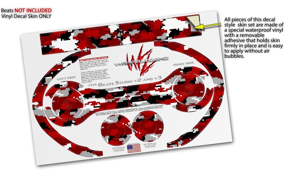 Notice: HEADPHONES NOT INCLUDED Fits: Beats Studio2 and Studio3 Wired and Wireless Headphones See more designs HERE . Features: Beats NOT INCLUDED - Fits Beats Remastered, Studio2 and Studio3 Wired and Wireless headphones. Decal style skin wrap covers beats headphone band top surface and ear cups. Pro Grade Skin - Dual Layer tough vinyl material coated with a high gloss protective laminate. Easy to apply without air bubbles - Removal with no sticky residue. Ships From and Made In USA by WraptorSkinz ® WraptorSkinz ® skin wraps are printed using superb photo quality designs and vibrant colors printed with special fade resistant inks that last even in direct sun for years. WraptorSkinz are a composite of two layers of commercial grade materials. The bottom layer is a soft, flexible vinyl with a special removable adhesive that is easily positioned, applied without air bubbles. Next we print the bottom layer with UV protected, fade resistant inks that deliver superb photo quality designs in vibrant colors. Finally we bond a professional grade laminate over the entire skin adding a glossy protective finish. This product is not affiliated with or endorsed by Apple or the Beats brand.