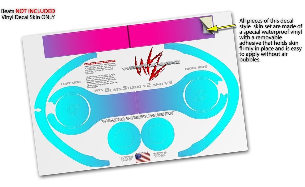 Notice: HEADPHONES NOT INCLUDED Fits: Beats Studio2 and Studio3 Wired and Wireless Headphones See more designs HERE . Features: Beats NOT INCLUDED - Fits Beats Remastered, Studio2 and Studio3 Wired and Wireless headphones. Decal style skin wrap covers beats headphone band top surface and ear cups. Pro Grade Skin - Dual Layer tough vinyl material coated with a high gloss protective laminate. Easy to apply without air bubbles - Removal with no sticky residue. Ships From and Made In USA by WraptorSkinz ® WraptoSkinz ® skin wraps are printed using superb photo quality designs and vibrant colors printed with special fade resistant inks that last even in direct sun for years. WraptorSkinz are a composite of two layers of commercial grade materials. The bottom layer is a soft, flexible vinyl with a special removable adhesive that is easily positioned, applied without air bubbles. Next we print the bottom layer with UV protected, fade resistant inks that deliver superb photo quality designs in vibrant colors. Finally we bond a professional grade laminate over the entire skin adding a glossy protective finish. This product is not affiliated with or endorsed by Apple or the Beats brand.