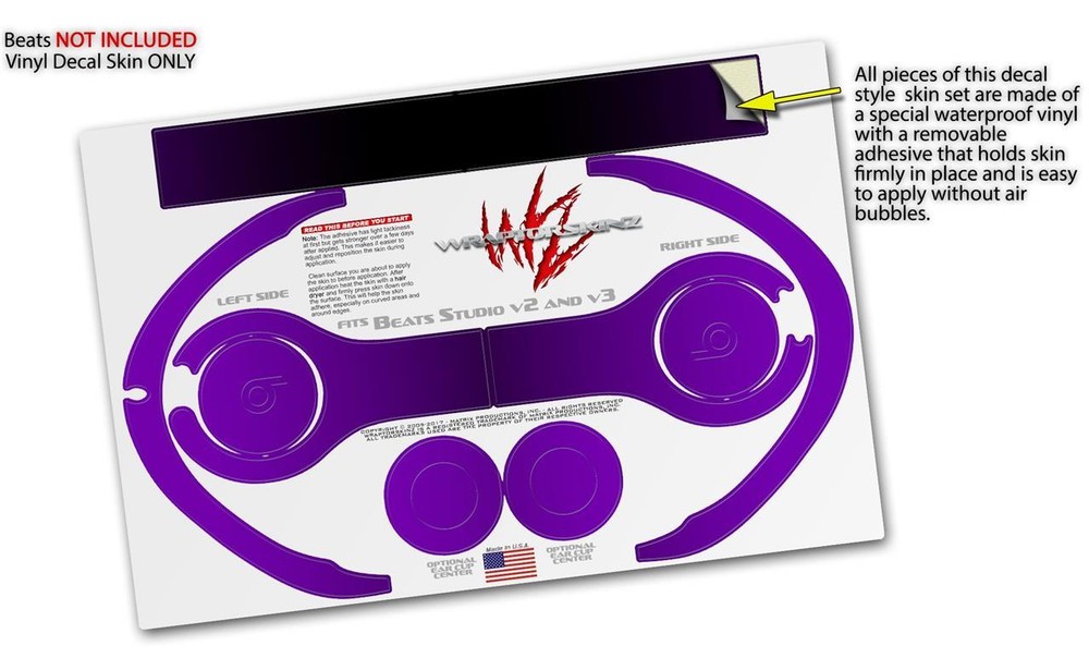Notice: HEADPHONES NOT INCLUDED Fits: Beats Studio2 and Studio3 Wired and Wireless Headphones See more designs HERE . Features: Beats NOT INCLUDED - Fits Beats Remastered, Studio2 and Studio3 Wired and Wireless headphones. Decal style skin wrap covers beats headphone band top surface and ear cups. Pro Grade Skin - Dual Layer tough vinyl material coated with a high gloss protective laminate. Easy to apply without air bubbles - Removal with no sticky residue. Ships From and Made In USA by WraptorSkinz ® WraptoSkinz ® skin wraps are printed using superb photo quality designs and vibrant colors printed with special fade resistant inks that last even in direct sun for years. WraptorSkinz are a composite of two layers of commercial grade materials. The bottom layer is a soft, flexible vinyl with a special removable adhesive that is easily positioned, applied without air bubbles. Next we print the bottom layer with UV protected, fade resistant inks that deliver superb photo quality designs in vibrant colors. Finally we bond a professional grade laminate over the entire skin adding a glossy protective finish. This product is not affiliated with or endorsed by Apple or the Beats brand.