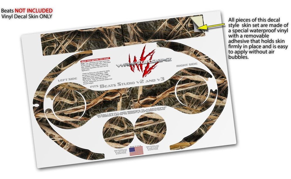 Notice: HEADPHONES NOT INCLUDED Fits: Beats Studio2 and Studio3 Wired and Wireless Headphones See more designs HERE . Features: Beats NOT INCLUDED - Fits Beats Remastered, Studio2 and Studio3 Wired and Wireless headphones. Decal style skin wrap covers beats headphone band top surface and ear cups. Pro Grade Skin - Dual Layer tough vinyl material coated with a high gloss protective laminate. Easy to apply without air bubbles - Removal with no sticky residue. Ships From and Made In USA by WraptorSkinz ® WraptorSkinz ® skin wraps are printed using superb photo quality designs and vibrant colors printed with special fade resistant inks that last even in direct sun for years. WraptorSkinz are a composite of two layers of commercial grade materials. The bottom layer is a soft, flexible vinyl with a special removable adhesive that is easily positioned, applied without air bubbles. Next we print the bottom layer with UV protected, fade resistant inks that deliver superb photo quality designs in vibrant colors. Finally we bond a professional grade laminate over the entire skin adding a glossy protective finish. This product is not affiliated with or endorsed by Apple or the Beats brand.
