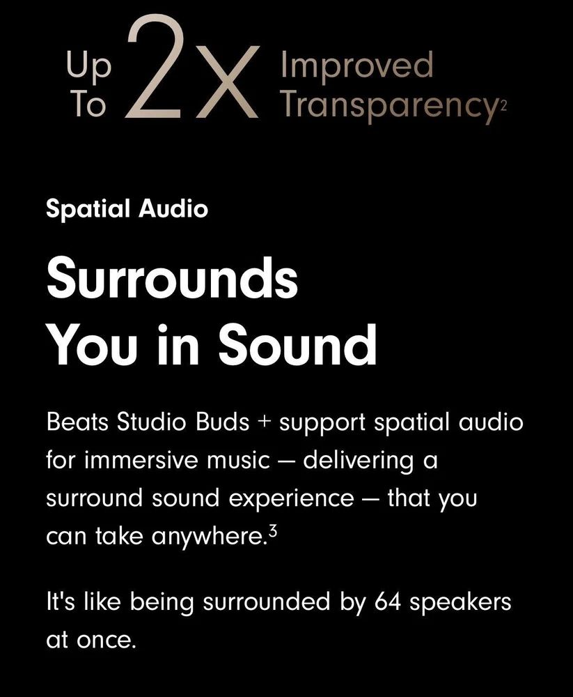 Beats Studio Buds – True Wireless Noise Cancelling Earbuds Clear / OPEN BOX LIKE NEW CNDITION 100% AUTHENTIC BEATS ALL SERIAL NUMBER HAS BEEN RECOREDED IN OUR STORE Included Items BEATS BY DR. DRE - BEATS STUDIO BUDS + TRUE WIRELESS NOISE CANCELLING EARBUDS - TRANSPARENT Beats Studio Buds + deliver rich, premium sound in a pocketable design, wherever you go. Featuring powerful, balanced acoustics, Active Noise Cancelling, Transparency mode, high-quality calls, up to 36 hours of battery life¹, enhanced Apple & Android compatibility, and 4 ear tip options to ensure a custom fit and great sound Beats Studio Buds + Earbuds Pocketable charging case Eartips with four size options USB-C to USB-C charging cable Quick Start Guide Warranty card Features Feel the emotion of powerful, balanced sound from Beatscustom acoustic platform Active Noise Cancelling (ANC) adapts to your personal fit to keep you immersed in the music Transparency mode blends your listening experience with the world around you Up to 36 hours of total battery life (9-hour earbuds + 27-hour charging case)¹ Enhanced Apple and Android compatibility with one-touch pairing and deeper ecosystem integration² Crisp, clear call performance from upgraded, voice-targeting mics Sweat and water resistant earbuds (IPX4-rated)³ Four soft eartip sizes provide a comfortable, stable fit and an acoustic seal for great sound quality Spatial audio for Dolby Atmos surrounds you with sound Extended range and fewer dropouts with Class 1 Bluetooth® Pocket-sized charging case with USB-C connector ¹ Testing conducted by Apple in March 2023 using preproduction Beats Studio Buds + and Charging Case units and software paired with iPhone 13/iPhone 14 units and prerelease software. The playlist consisted of 358 unique audio tracks from the iTunes Store (256-Kbps AAC encoding). Volume was set to 50% and Active Noise Cancellation and Transparency were turned off. Testing consisted of full Beats Studio Buds + battery discharge while playing audio until the first Beats Studio Buds + stopped playback. Battery life depends on device settings, environment, usage, and many other factors. ² Requires an iCloud account and a compatible Apple device running the latest operating system software or a compatible Android device running Android 8.0 or later, with Google Play Services enabled. ³ Beats Studio Buds + are sweat and water resistant for non-water sports and exercise. Beats Studio Buds + were tested under controlled laboratory conditions, and have a rating of IPX4 under IEC standard 60529. Sweat and water resistance are not permanent conditions and resistance might decrease as a result of normal wear. Do not attempt to charge wet Beats Studio Buds +; refer to https://support.apple.com/en-us/HT209542 for cleaning and drying instructions. The charging case is not sweat or water resistant. Compatible hardware and software required. Works with compatible content in supported apps. Not all content available in Dolby Atmos. Specifications True Wireless: true Battery Life Provided by Charging Case: 27 hours Sound Isolating: true Built-In Microphone: true Battery Life: 9 hours Water Resistant: true Wireless Connectivity: Bluetooth Connection Type: Wireless Manufacturer's Warranty - Labor: 1 year Manufacturer's Warranty - Parts: 1 year Rechargeable: true Model Number: MQLK3LL/A Color Category: Clear Headphone Fit: In-Ear Carrying Case: true Charging Accessory Included: Case Works With: Siri Product Name: Beats Studio Buds + True Wireless Noise Cancelling Earbuds Charging Interface(s): USB Type C Ear Tip Sizes Included: Extra small, Small, Medium, Large Brand: Beats by Dr. Dre Color: Transparent Noise Cancelling (Active): true