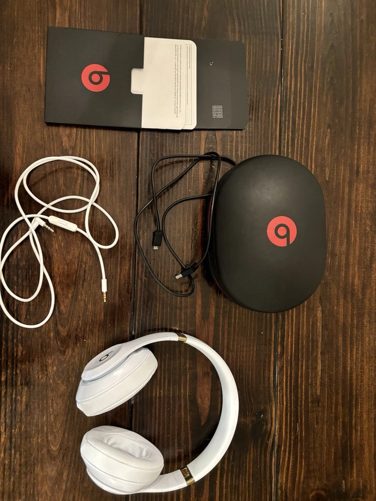 These are in great condition and well taken care of. Enjoy your music like never before with these Beats by Dr. Dre Studio 3 Wireless Headphones in White. These headphones come with an adjustable headband, volume control, and noise cancellation to give you the ultimate music experience. The detachable cable and built-in microphone make these headphones perfect for everyday use. Connect these headphones through Bluetooth or a 3.5mm jack and enjoy a seamless audio experience. These headphones have a double earpiece and an over-the-ear design for a comfortable fit. The Beats by Dr. Dre Studio 3 Wireless Headphones are perfect for anyone who wants to enjoy music without any disturbance.