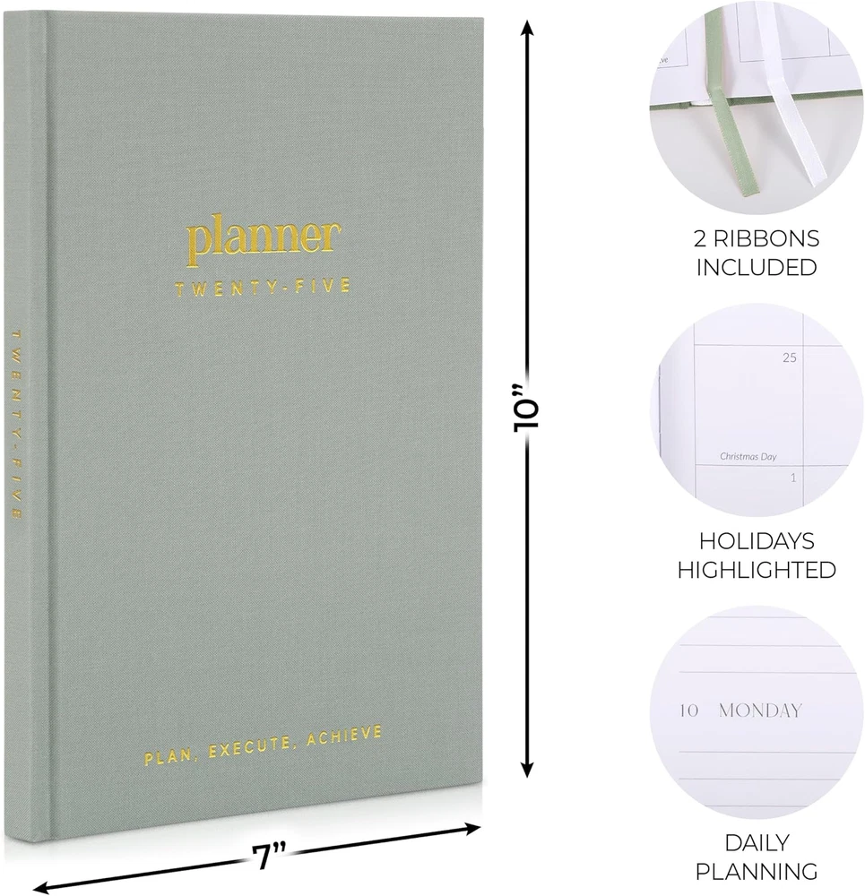 Store New Arrivals Add to Favorite View Feedback Contact Fast deliveries to the customer's home Quality customer service John Make the customers happy! Beautiful 2025 Daily Planner - 7" X 10" Planner for Women or Men with Weekly & Monthly Spreads for Easy Planning - Beautiful Calendar Book to Organize Tasks and Boost Productivity Description In 2025 It’s Time To: Get the max. from your time & reach your full potential! The modern 7x10" daily planner is here to help you to foster better time & task management. It’s easier than ever for you to stay organized, reduce stress & enjoy more free time Plenty Of Space For Efficient Planning: Stay focused on your daily & weekly tasks, boost your productivity and manage your time wisely - ZICOTOs’ 2025 planner offers ample space with 1 week spread across 2 pages, a dedicated priority list and space for notes Perfect For Planning Ahead Smartly: Map out and coordinate your appointments, deadlines, errands & more with the clever monthly overview page, including a practical notes section and public holidays Enjoy Convenient Extra Features: The daily planner has a few extra favors in store for you! Practical ribbons and printed monthly tabs for your quick orientation Your Beautiful Premium Planner: Reliably at your side day by day - thanks to a sturdy linen cover. In addition, the modern minimalistic design makes the daily & weekly planner a gorgeous eye-catcher - durable, functional and simply beautiful ZICOTO Daily Planner: Make 2025 a fantastic year - with smart planning & less stress! Get things out of your head and onto this beautiful daily planner! It not only ensures that you won't let any appointments or deadlines slip, but also gives you well deserved peace of mind - lower your stress and boost happiness! Use the 7x10" planner to keep track of almost anything. In addition to a yearly overview on the back page, you have plenty of space to plan each month and day effectively. Want to add more notes or information? We’ve got you covered, with extra page for notes and a calendar overview back of the planner. Monthly overview from January to December 2025: Monthly planning ahead is great for balancing your workload conveniently! The planner shows monthly views (1 month - 2 pages), including public holidays and additional space for notes. To help you find the current month right away and to save valuable time, there are also monthly tabs printed. Weekly planner with 1 week over 2 pages: The weekly and daily planner will help you get things done on time. Prioritize the most crucial tasks of the week and organize your daily tasks smartly - be organized, plan smart & boost your productivity! Having an exact and neat list of things to do, truly speeds up the process and frees up time for leisure activities. Yay! Furthermore, there are 2 ribbons for quick orientation. Color Sage Material Type Paper Product Dimensions 9.64"L x 6.89"W x 0.62"Th Material Paper Binding Hardcover Global Trade Identification Number 05060669276319 Item Dimensions L x W x Thickness 9.64"L x 6.89"W x 0.62"Th Year 2025 Recommended Uses For Product Daily Planner Model Year 2025 Cover Material Linen Item Dimensions L x W 9.64"L x 6.89"W ABOUT US We offer the best prices around on high quality products. Our E-store includes media such as books, movies, music and games while offering electronics, toys, sporting apparel, clothing, tools, general home, garden items and more. SHIPPING We are always working hard to ensure your package arrives as soon as possible. Please understand that some factors like weather, high postal traffic, and the performance of shipping companies are outside of our control. We offer free shipping to the lower 48 states and ship within 2 business days of payment, usually sooner. We do not accept P.O. Boxes. Please provide a physical address. For shipping outside of the continental USA, we only use eBay's Global Shipping Program. The item is shipped to KY and then sent to the rest of the world. International customers are responsible for all duties and taxes. Continue to 'check out' to calculate costs for shipping the item to your country. Messages regarding eBay's Global Shipping Program MUST be directed at eBay EXCLUSIVELY. RETURNS We offer a 30-Day Return Policy on items in which you are not completely satisfied with. You have the option of a full-refund or an exchange of the item. No returns are available on items shipped outside of the USA PAYMENT We accept PayPal. CONTACT US This page content is yet to come Please ad us to your favorite seller and visit again later Thank You CUSTOMER SATISFACTION We try our very best to make sure every customer is completely satisfied. If there's a problem, message us! We're happy to help. WE ACCEPT