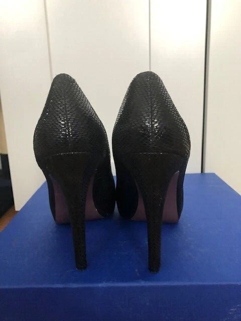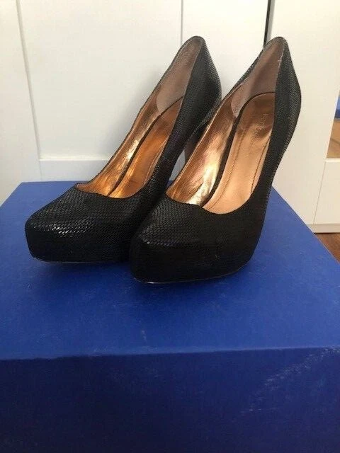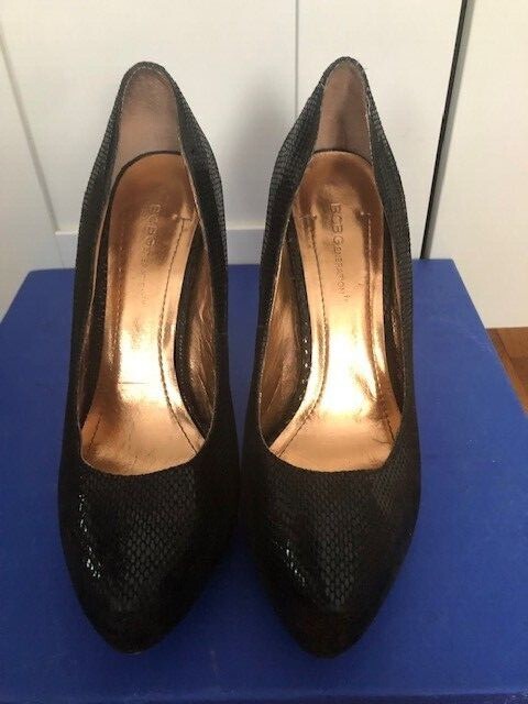 The BCBGeneration Penni with a lofty platform, pointy toe, and stiletto heel make this pump a stylish standout for any occasion. 4.5" Stiletto heel, 1.0" platform, Slip-on entry, Padded insole with memory foam and green latex, flexible outsole Synthetic upper, lining, and outsole, Shoe width - medium size 7.5, Color Black Lizard. In excellent condition!