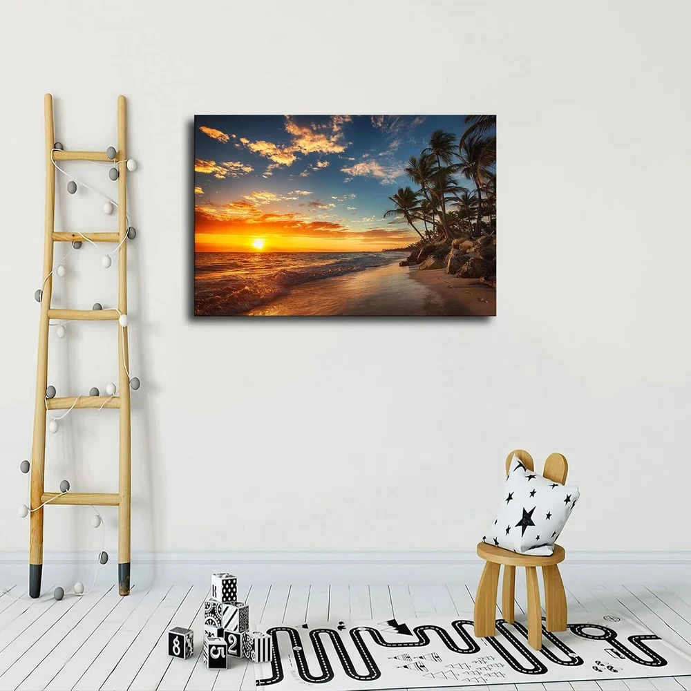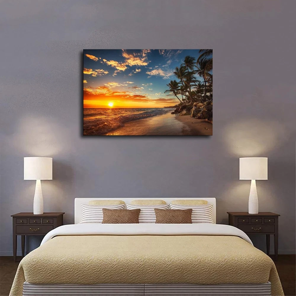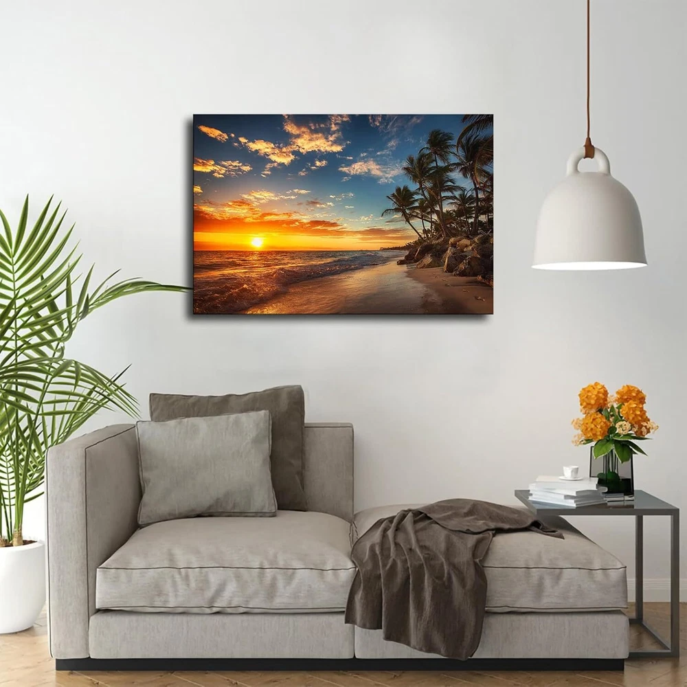 Beautiful Beach Scenery At Sunset Posters and Wall Art Picture Decor Canvas