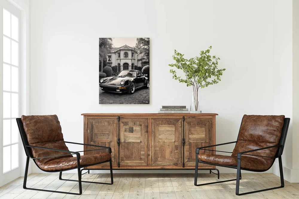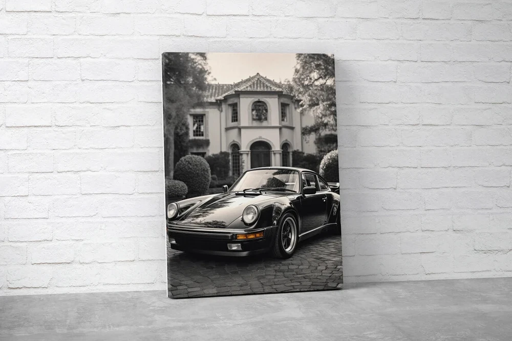 Beautiful Black Classic Car Parked on Street Wall Art Canvas Unframed Print Art