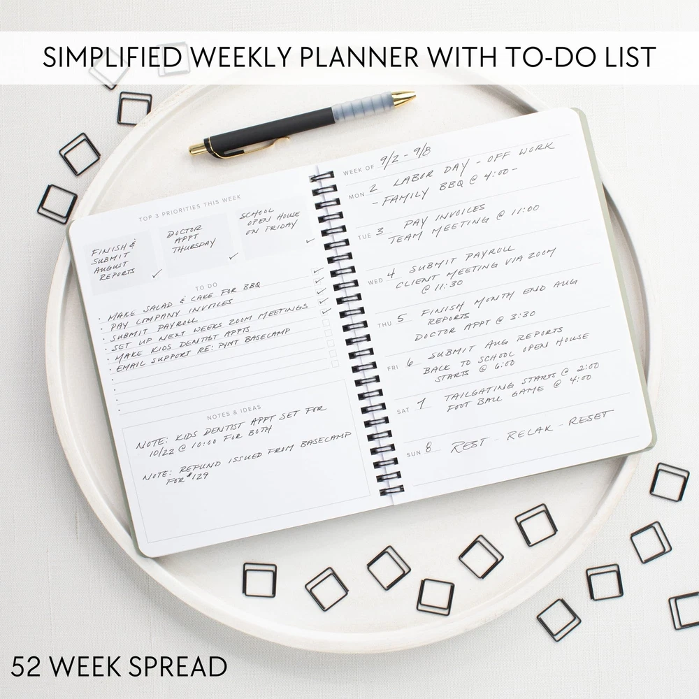 Transform Your Weeks By Planning For Success With The Beautiful Undated Weekly Planner By ZICOTO! Turn your weekly schedule into a smooth organizational masterpiece with ZICOTOs’ undated planner, designed to effortlessly tackle every week's tasks. The minimalist planner ensures 52 weeks of well-organized priorities, to-dos, ideas and more, offering efficient planning to streamline and de-stress your life. Experience the natural surge in focus and productivity with the functional to do list planner. The simple and clean layout enables you to maximize your focus, keeping your mind clear as you structure your weeks towards achieving your weekly goals. The 8.3x6.5” productivity planner offers plenty of space to unleash your inner organizational genius. Each week unfolds with two pages, offering ample space for priorities, to-dos, notes, and creative ideas. Seize the opportunity to get the most out of your weeks – and ultimately, your life. Each glance at your planner becomes an inspiring moment! Not only do you feel empowered by your new-found planning mastery, the beautiful design of the to do planner sparks creative flow and motivation. Furthermore, the sturdy ring wire binding adds stability and durability to your planner. Start your journey towards enhanced organization and reduced stress anytime you want - the undated design of the weekly planner makes it possible. Whether you're embarking on a weekly planning session, using it as a daily journal, a habit journal or simply freeing your mind with a daily brain dump, the undated planner is ready for you to grasp the opportunity and make a positive change in your life. Manage Your Weekly Agenda With Ease: Tackle each week effortlessly with Zicotos’ undated weekly planner. The versatile to do planner is designed for 52 weeks of organized priorities, to-dos, schedules and more. Streamline your life with efficient planning! Ultimate Focus & Productivity Boost: Thanks to the straightforward layout of the minimalist to do list planner you can transform your weeks into a well-structured, fulfilling journey towards your goals & aspirations by maximizing your focus and keeping a clear mind Plenty Of Space To Ignite Planning Mastery: Find ample space in the 8.3x6.5” undated planner to stay on track and get the most out of your weeks - and life. The productivity planner offers 2 pages per week with space for priorities, to do’s, notes & ideas Absolutely Beautiful & Modern Design: Turn your weekly planning routine into an inspiring experience! The top-notch undated planner stuns with a minimalist, stylish cover in timeless beige with an elegant gold foil and a robust golden ring wire Perfect To Start Anytime - Seize The Moment: Enhance planning, reduce stress - kickstart your life upgrade whenever you're ready! As a weekly planner, daily journal, habit journal or for your daily brain dump, the undated planner is ready for you to start anytime