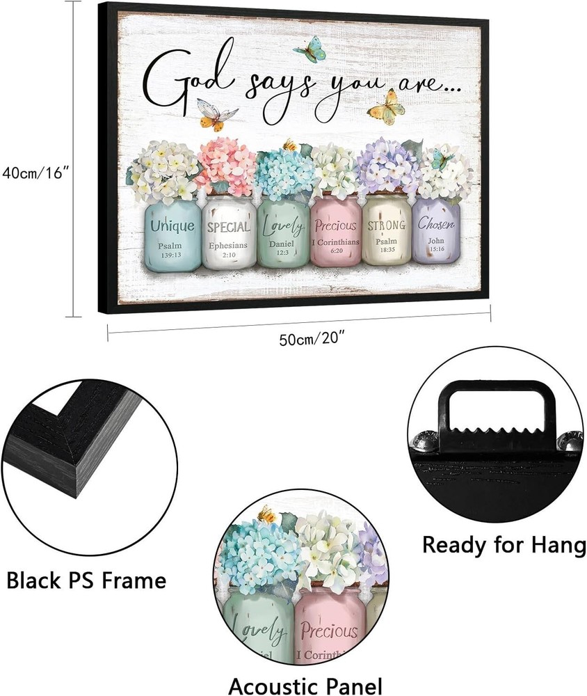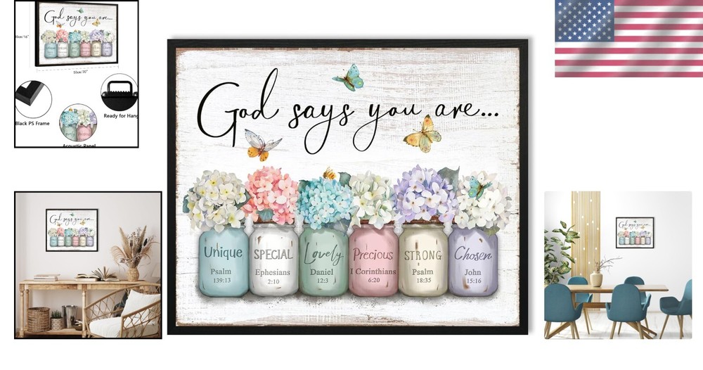 Beautiful 'God Says You Are' Wall Art - Christian Gift with Hydrangea Design ‹ › ‹ › ‹ › ‹ › ‹ › ‹ › ‹ › ‹ › ‹ › ‹ › Beautiful 'God Says You Are' Wall Art A Christian Gift adorned with a Hydrangea Design Product Highlights: Inspiration art featuring uplifting Bible scripture Beautiful flower elements on sound-absorbing materials Dimensions: 16x20 inches (40x50cm) Sturdy, lightweight black frame with a pre-installed hook for easy hanging Utilizes HD GICLÉE printing for vibrant colors Durable construction enhances the artwork's longevity in your space Transform Your Space: This exquisite 'God Says You Are' wall art not only serves as a stunning focal point in any room but also invites an aura of tranquility and inspiration into your home. The hydrangea floral design nestled in a mason jar promotes a calming atmosphere, making it ideal for living rooms, bedrooms, or home offices. Perfect for Any Setting: Whether you want to uplift your personal space or enrich a communal one, this piece is suitable for churches, chapels, and workplaces, crafting an uplifting, faith-based environment wherever it's displayed. A Thoughtful Gift: This unique wall art makes a meaningful gift for Christian family members, friends, or fellow believers. Share a message of encouragement during special occasions like Thanksgiving, Christmas, anniversaries, birthdays, or any celebration to elevate the spirits of your loved ones. Why Choose Our Wall Art? Distinctive in design and rich in meaning, our 'God Says You Are' wall art seamlessly blends aesthetic beauty with spiritual significance. Elevate your space or gift it to someone special, reminding them of their divine worth with this elegant and motivational piece. Shipping Free & Fast Shipping - We offer free shipping to most of the USA with a normal delivery time of 3-7 days. However, due to the current situation, additional delivery time (up to 3 weeks) may be required for some items. Alternative Carriers - We may use alternative carriers (e.g. USPS, FedEx, UPS, etc.) to ensure your package arrives safely and on time. Due to the use of multiple carriers, we are unable to provide a tracking number automatically. Handling Time - Orders are processed and shipped within 1-2 business days of receiving cleared payment. Shipping Restrictions - Shipping to Alaska, Hawaii, Puerto Rico, Guam, and other US territories may incur shipping charges or delivery restrictions. Please contact us before ordering, or your order can be refunded/cancelled. State Restrictions - There may be restrictions based on your state of purchase. For example, certain items may not be shipped to California due to state regulations. Contact for Tracking Updates - If you require tracking updates or have any concerns about the delivery of your order, please feel free to contact us, and we will be happy to assist you. Return 30-Day Hassle-Free Returns - We want you to be completely satisfied with your purchase. If you are not, you can return the item within 30 days of receiving it for a full refund or exchange. Easy Return Process - To start a return, simply contact us and we will provide you with a prepaid return shipping label and detailed instructions. Restocking Fee - There are no restocking fees for returns. However, the buyer is responsible for return shipping costs if the return is not due to a seller's error. Refund Processing Time - Refunds will be processed within 5 business days of receiving the returned item in its original condition. Payment We accept all major credit cards, PayPal, and Apple Pay for your convenience. Your payment information is secure and encrypted to ensure a safe and seamless transaction. Please complete your payment within 3 days of purchase to avoid any delays in shipping. Feedback Your feedback is extremely important to us. We strive to provide the best products and customer service possible. If you are satisfied with your purchase, please take a moment to leave us a positive review. If you have any concerns or issues with your order, please contact us before leaving negative feedback. We are committed to resolving any problems and ensuring your satisfaction. Contact Us If you have any questions or concerns, please feel free to reach out to our customer support team. You can contact us through the eBay messaging system. We are available Monday to Friday, 9:00 am to 5:00 pm EST, and we will do our best to respond to your inquiry within 24 hours. Buy it now and enjoy a pleasant shopping experience! UPC: Not Set Unit Quantity: 1.75 Theme: Art Material: Polyester Features: Decorative,Ready To Hang,Inspirational,Uplifting,Sound-Absorbing,Eye-catching,Durable Room: Any Room,Bedroom,Living Room,Office,Home Office,Church,Chapel Character: Ares Department: Kids,Teens,Adults Care Instructions: Clean with Damp Cloth,Easy Care Brand: Unbranded Type: Poster Subject: Bible Verse Style: Contemporary Character Family: Not Set Size: Medium Color: Multicolor Country/Region of Manufacture: Not Set MPN: Not Set Artist: Unknown Orientation: Vertical Era: 21st Century (2000-Now) Item Width: Not Set Item Height: Not Set Item Length: Not Set Product Line: Not Set Item Weight: 1.75 lb Model: Not Set Unit Type: lb Original/Reproduction: Not Set Signed: Not Set Personalize: Not Set Additional Parts Required: Not Set Customized: Not Set