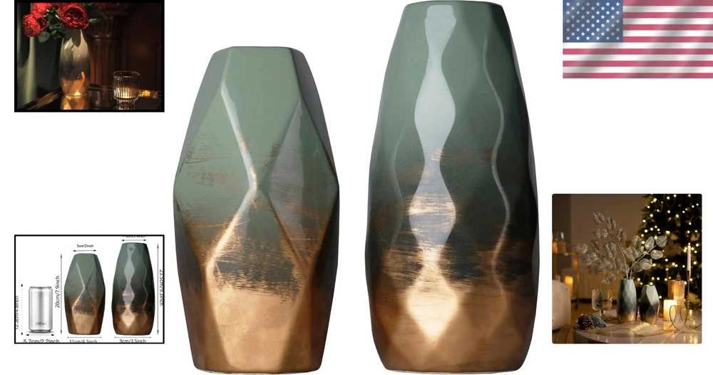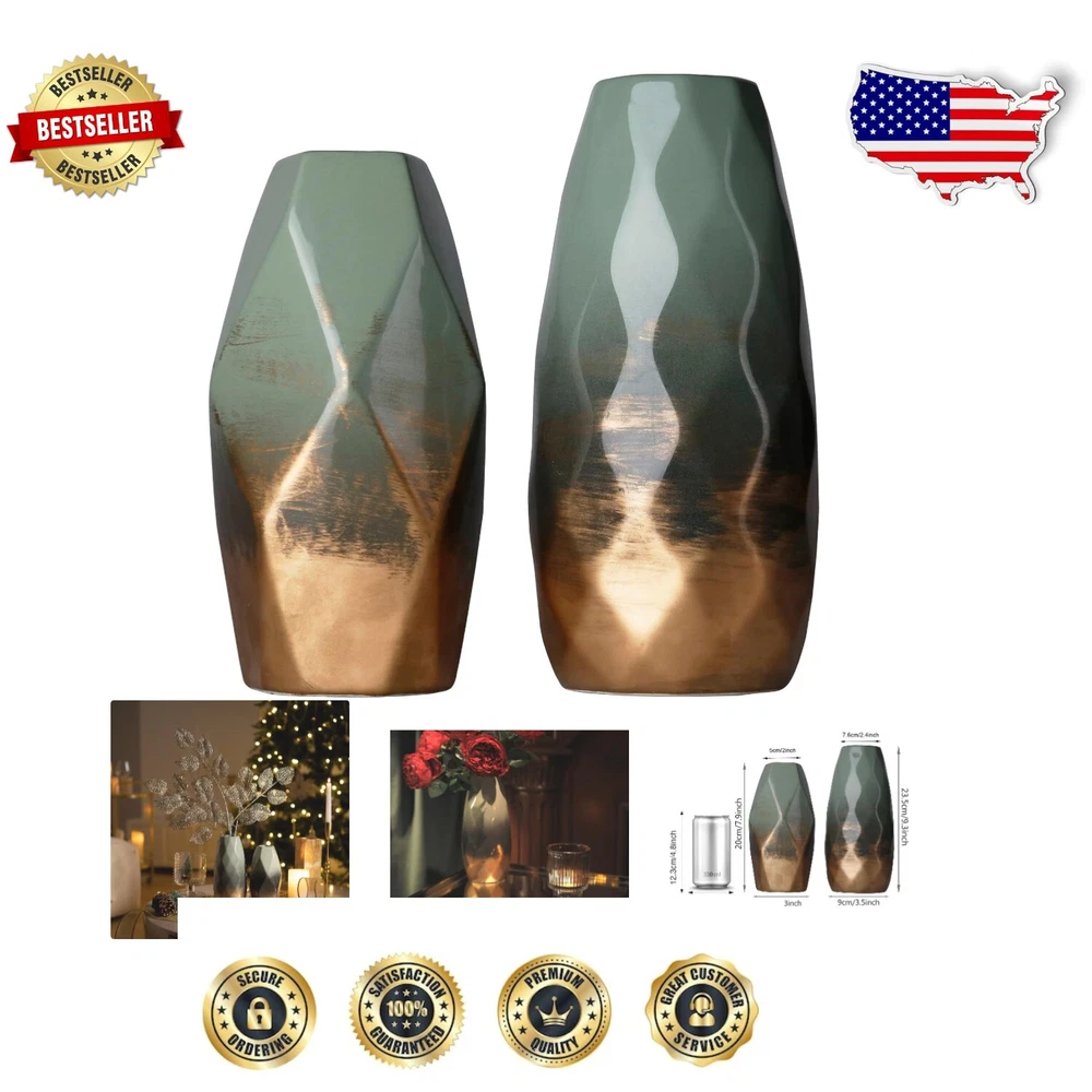 Beautiful Green and Gold Ceramic Vase Set for Living Room & Gift Occasions ‹ › ‹ › ‹ › ‹ › ‹ › ‹ › ‹ › ‹ › ‹ › ‹ › ‹ › Beautiful Green and Gold Ceramic Vase Set Elevate your home décor with this stunning Green and Gold Ceramic Vase Set, the perfect choice for enhancing the aesthetics of your living room or gifting for special occasions. Features: Aesthetic Look: Captivating green and gold color palette in a geometric shape, lending a modern flair to any setting. Watertight Design: Ideal for displaying olive branches and green plants, this vase serves both as a functional holder and a striking décor piece. Anti-skid Pad: Protects your furniture while ensuring stability for the modern vases. Well-packaged: Safely wrapped in molded foam and a sturdy box to prevent damage during transportation. Exquisite Craftsmanship: Made from high-quality ceramic, ensuring durability and a timeless appeal that will keep your décor looking fresh year after year. Dimensions: Designed with a moderate opening, perfect for showcasing 4-6 stems (please refer to images for exact sizes). Multiple Applications: Versatile enough for use in living rooms, bedrooms, mantels, fireplaces, entryways, bookshelves, and hallways. Ideal Gifts: Perfect for any occasion including Christmas, Mother's Day, Thanksgiving, Anniversaries, Weddings, or Housewarmings. Delightful for friends and family alike. Embrace Elegance: Transform your living space into a sanctuary of style with this beautiful vase set. The vibrant blend of green and gold not only enhances your décor but also brings a sense of tranquility, reminiscent of a spring blossom. Don't miss the chance to own this exquisite piece or give the perfect gift to your loved ones. Order your Green and Gold Ceramic Vase Set today and experience the art of home décor! Shipping Free & Fast Shipping - We offer free shipping to most of the USA with a normal delivery time of 3-7 days. However, due to the current situation, additional delivery time (up to 3 weeks) may be required for some items. Alternative Carriers - We may use alternative carriers (e.g. USPS, FedEx, UPS, etc.) to ensure your package arrives safely and on time. Due to the use of multiple carriers, we are unable to provide a tracking number automatically. Handling Time - Orders are processed and shipped within 1-2 business days of receiving cleared payment. Shipping Restrictions - Shipping to Alaska, Hawaii, Puerto Rico, Guam, and other US territories may incur shipping charges or delivery restrictions. Please contact us before ordering, or your order can be refunded/cancelled. State Restrictions - There may be restrictions based on your state of purchase. For example, certain items may not be shipped to California due to state regulations. Contact for Tracking Updates - If you require tracking updates or have any concerns about the delivery of your order, please feel free to contact us, and we will be happy to assist you. Return 30-Day Hassle-Free Returns - We want you to be completely satisfied with your purchase. If you are not, you can return the item within 30 days of receiving it for a full refund or exchange. Easy Return Process - To start a return, simply contact us and we will provide you with a prepaid return shipping label and detailed instructions. Restocking Fee - There are no restocking fees for returns. However, the buyer is responsible for return shipping costs if the return is not due to a seller's error. Refund Processing Time - Refunds will be processed within 5 business days of receiving the returned item in its original condition. Payment We accept all major credit cards, PayPal, and Apple Pay for your convenience. Your payment information is secure and encrypted to ensure a safe and seamless transaction. Please complete your payment within 3 days of purchase to avoid any delays in shipping. Feedback Your feedback is extremely important to us. We strive to provide the best products and customer service possible. If you are satisfied with your purchase, please take a moment to leave us a positive review. If you have any concerns or issues with your order, please contact us before leaving negative feedback. We are committed to resolving any problems and ensuring your satisfaction. Contact Us If you have any questions or concerns, please feel free to reach out to our customer support team. You can contact us through the eBay messaging system. We are available Monday to Friday, 9:00 am to 5:00 pm EST, and we will do our best to respond to your inquiry within 24 hours. Buy it now and enjoy a pleasant shopping experience! UPC: Not Set Unit Quantity: 2 Material: Ceramic Theme: Geometric Department: Adults Features: Decorative,Anti-skid pad,Watertight,Well-packaged,Exquisite Craftsmanship,Sturdy Character: Not Set Mounting: Free Standing Room: Bathroom,Bedroom,Dining Room,Kitchen,Living Room,Home Office,Shelf,Mantel Care Instructions: Easy Care Brand: Unbranded Type: Vase Set Color: Green Shape: Geometric Style: Modern Origin: Not Specified MPN: Not Set Pattern: Geometric Item Height: Not Set Country/Region of Manufacture: Not Set Item Length: Not Set Item Width: Not Set Character Family: Not Set Finish: Not Specified Glassmaking Technique: Not Set Item Weight: Not Specified Model: Not Set Product Line: Not Set Unit Type: Unit Vintage: Not Set Additional Parts Required: Not Set Personalize: Not Set Customized: Not Set