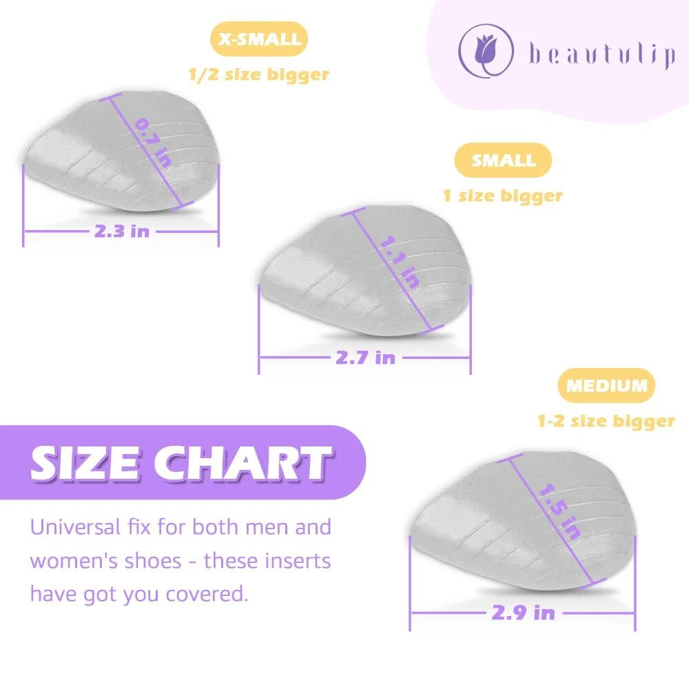 Beautulip Shoe Filler Inserts for Loose Shoes, Shoe Inserts for Shoe Too Big, Toe Filler Make Shoes Fit, for Both Men and Women (Small: 1/2-1 Size Bigger) HIGH QUALITY MEMORY FOAM SHOE FILLER INSERT: Our Shoe fillers are designed to fit the shoes that are too big for you and prevent your feet from sliding in and out of the shoes. Here is the softest and most comfortable toe filler insert that make your shoe feel even better than before IMPECCABLE SHAPE: After hundreds of testing and research, this ergonomic shape is comfortable even for those with sensitive toes. Provides ultra soft cushioning for all-day comfort and build a strong foundation to maintain stability and the best condition throughout the day LIGHTWEIGHT TOE INSERTS: Made from lightweight, soft material that conforms to the shape of the foot, providing a comfortable fit and reducing foot fatigue CUSTOMIZABLE SIZE: The shoe filler is available in 3 sizes and can be trimmed to fit the specific size and shape of the shoe, ensuring a comfortable and snug fit EASY TO USE: Simply insert the filler into the toe box of the shoe and enjoy a more comfortable and secure fit. Suitable for a range of shoe styles, including flats, heels, sneakers, boots and more. Can be used for both men's and women's shoes HIGH QUALITY MEMORY FOAM SHOE FILLER INSERT: Our Shoe fillers are designed to fit the shoes that are too big for you and prevent your feet from sliding in and out of the shoes. Here is the softest and most comfortable toe filler insert that make your shoe feel even better than before IMPECCABLE SHAPE: After hundreds of testing and research, this ergonomic shape is comfortable even for those with sensitive toes. Provides ultra soft cushioning for all-day comfort and build a strong foundation to maintain stability and the best condition throughout the day LIGHTWEIGHT TOE INSERTS: Made from lightweight, soft material that conforms to the shape of the foot, providing a comfortable fit and reducing foot fatigue CUSTOMIZABLE SIZE: The shoe filler is available in 3 sizes and can be trimmed to fit the specific size and shape of the shoe, ensuring a comfortable and snug fit EASY TO USE: Simply insert the filler into the toe box of the shoe and enjoy a more comfortable and secure fit. Suitable for a range of shoe styles, including flats, heels, sneakers, boots and more. Can be used for both men's and women's shoes Shipping from the USA All of our products are shipped from the USA, ensuring quick delivery to your destination. Payment We offer the following payment methods: PayPal, credit card, bank transfer, and eBay's secure payment system. Free Shipping & Free Returns Shipping within the USA is FREE. Additionally, any return is absolutely free for you. Risk-Free Purchase You have the option to return an item within 30 days without any justification. We cover the return shipping costs! Fast Shipping We ship immediately upon receipt of payment. Generally, the package is delivered within 2-3 days in the USA. If it takes longer, we will contact you. Quality and Costs Made in Europe, USA, China No customs fees or additional charges Total satisfaction guarantee Invoice with declared VAT available upon request in .pdf format Feedback Your feedback is very important to us. After you pay for your purchase, you will automatically receive positive feedback from us.