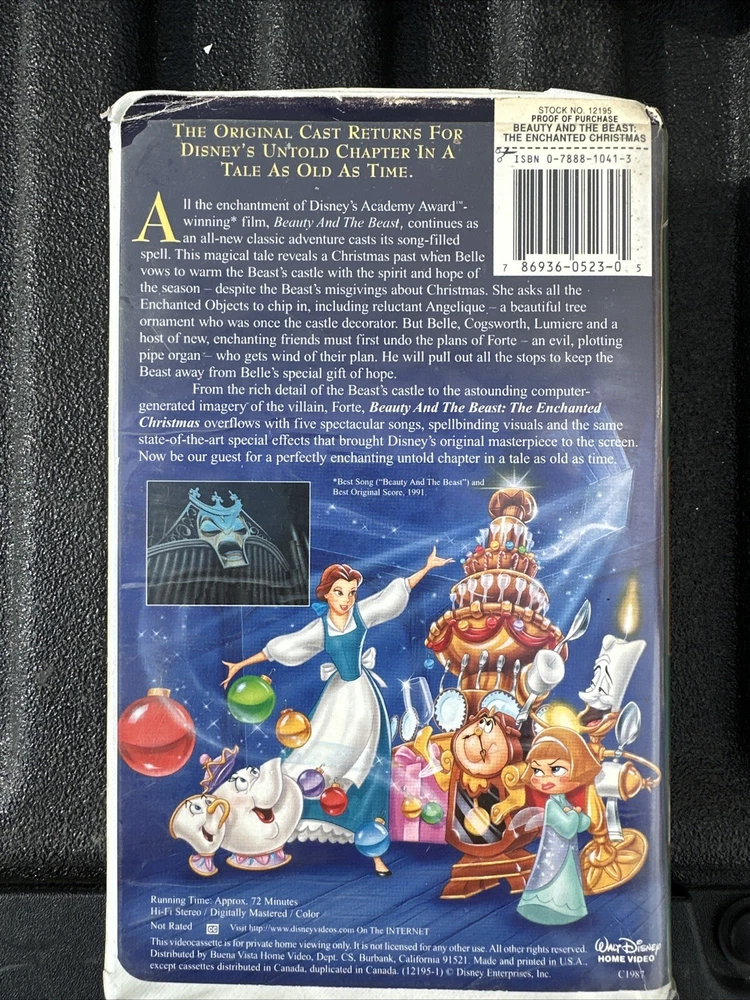 This VHS tape features the beloved Disney classic, Beauty and the Beast, in a special Enchanted Christmas edition. With stunning visuals and a captivating storyline, this film follows the adventures of Belle and the Beast as they embark on a magical journey to save the world from evil forces. This VHS tape is a great addition to any Disney collection and is perfect for fans of the film and the Christmas season. It features a variety of special features, including a Christmas special and holiday-themed content, making it a wonderful gift for children and families alike.