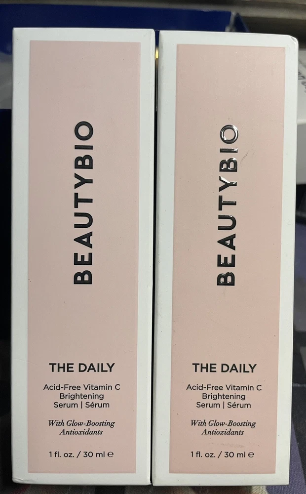 BeautyBio The Daily Acid-Free Vitamin C Brightening Serum 1oz. NEW IN Box sealed. Description Product Description The Daily Intensive Vitamin C Cocktail Serum is a proprietary daily serum that helps to moisturize skin, fight against free radical aggressors and has photoprotective qualities helping skin appear smoother, younger and more even. It is also shown to help increase collagen production and help skin maintain moisture retention. This fast absorbing formula contains HyperVitamin Compound, Uva-Ursi Extract, Yarrow Flowering Plant Extract and other key ingredients. Unlike many serums in the marketplace, The Daily features Magnesium Ascorbyl Phosphate (a component of Hypervitamin Complex) which is a stable precursor of Vitamin C. The Daily is fast absorbing and is designed to work both independently and layered under other treatment creams each morning. The Daily’s airless pump helps keep active ingredients at peak concentration. Boosts skin’s antioxidant levels and encourages collagen synthesis. Shields against daily free radical damage. Designed to help even the appearance of skin’s tone and texture. Helps regulate oil production and balance skin's pH level to reduce breakouts Brand Story BeautyBio is bringing truth to beauty, which means total transparency. Our R&D roots help us create high performance technology backed by science and a skincare routine that is easy, effective and stress-free. Features & details Proprietary combination of our HyperVitamin compound to dramatically boost skin’s antioxidant levels Shields against daily free radical damage. Creates a barrier to help lock in key actives Designed to help even the appearance of skin’s tone. Immediately penetrates skin diving down to both superficial and deep layers Designed to work both independently or layered under treatment creams. Airless pump keeps active ingredients at peak concentration Recommended for AM use. Designed for all skin types. Apply 1-2 pumps of serum evenly to cleansed face once a day in the morning. May be used underneath The Ultimate or The Protector. Individual results may vary.