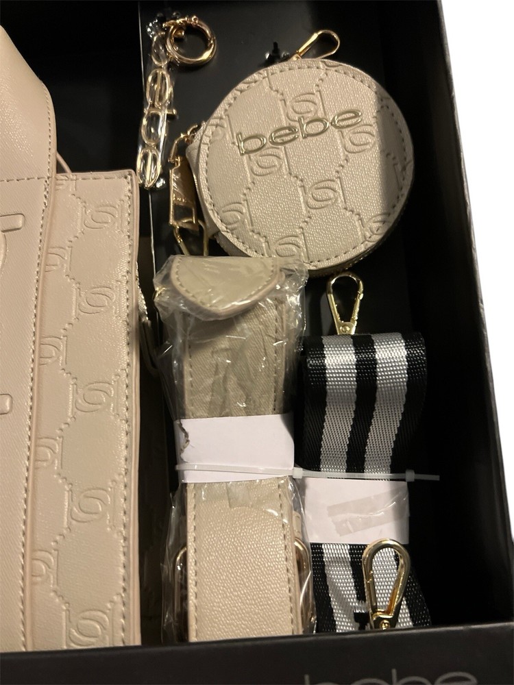 This adorable Bebe gift set is a must-have! The mini quilted purse is so chic and versatile, perfect for a night out or casual wear. The matching coin key purse adds a cute touch, and the gold chain gives it a luxe feel. Brand new with tags, great quality, and shipped fast. Love it!