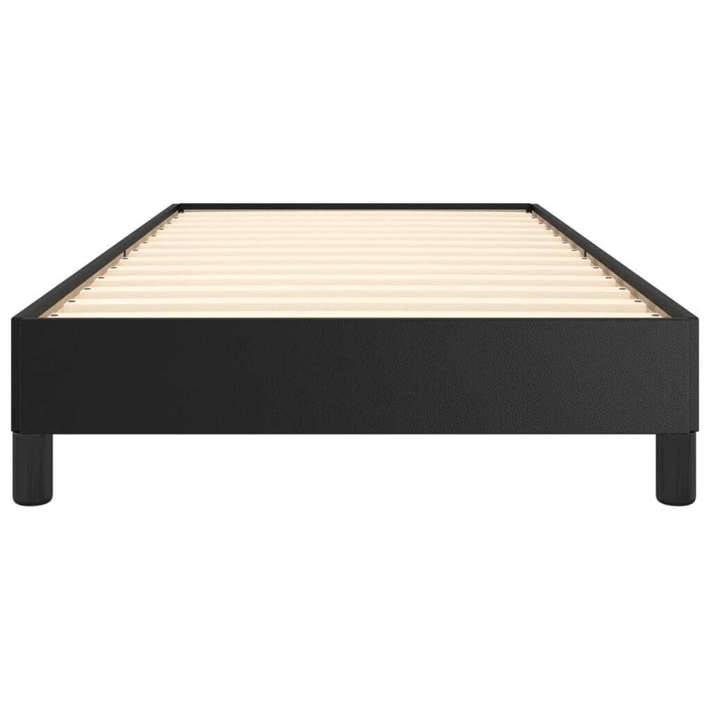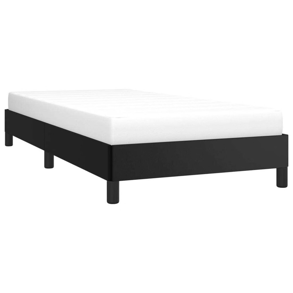 Size: Twin This contemporary twin bed frame is the perfect mix of style and function, making it a great focal point for any modern bedroom. With its sleek black faux leather finish and solid build, it not only offers comfort but also boosts the look of your space. This bed frame offers loads of storage, keeping your bedroom tidy with plenty of room for your belongings. It's got a sleek design that fits beautifully into contemporary decor, adding elegance and class to your room. Made from tough faux leather, this frame is built to last, even with regular use, and keeps looking sharp over time. Assembly is super easy with clear instructions, needing no prior experience, so you can start enjoying your bed right away. Designed for one person, it comfortably supports a maximum weight of 220.5 lbs, ideal for a cozy sleeping setup for adults. Color: Black Shape: Rectangular Material: Fabric Artificial Leather Indoor/Outdoor: Indoor Only Cover Included: No Room: Bedroom Capacity: Single Maximum Number of People: 1 Maximum Weit: 220.5 lbs Dimensions: 40.6 x 76 x 9.8 cm (W x L x H) Leg Height: 10.0 cm Weight: 37.04 lbs Swings: No Delivery Contains: Bed frame Assembly Required: Yes Recommended Number of People for Assembly: 2
