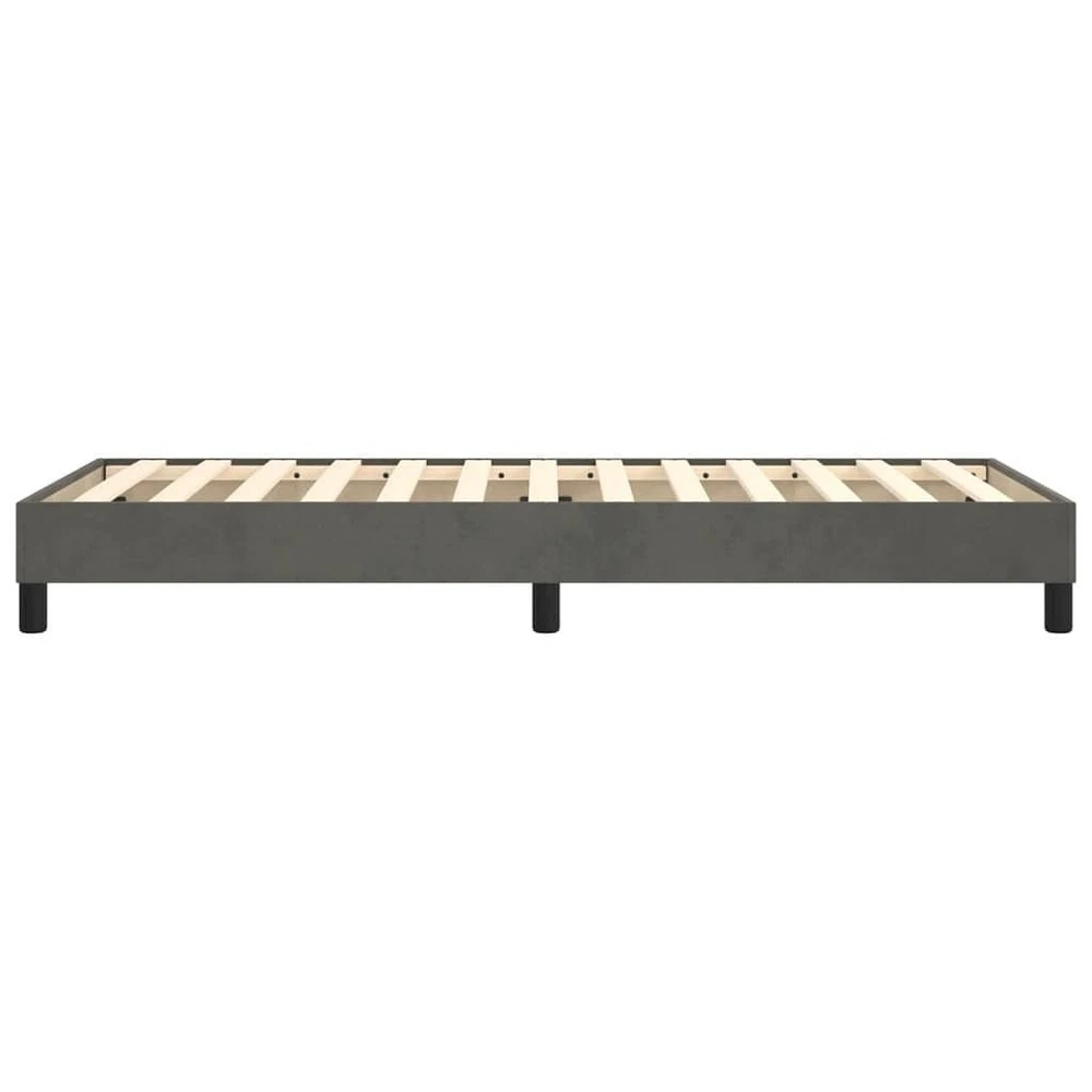 Size: Twin This dark gray velvet twin bed frame combines style and function, turning any bedroom into a chill zone. With its sleek design and luxurious velvet, it's a standout piece that's comfy, perfect for young adults or anyone wanting a minimalist vibe. Elegant Velvet Upholstery: The soft-touch velvet fabric enhances the bed's looks and comfort, making it a nice retreat after a long day. Robust Engineered Wood Frame: Made from quality engineered wood, this bed frame is built to support your sleep needs with durability and stability. Space-Saving Dimensions: The twin size is ideal for small bedrooms, guest rooms, or maximizing apartment space, without compromising style or comfort. Versatile Use: Great for various interior styles, the bed frame fits in with modern or contemporary decor, enhancing your room's vibe. Low Maintenance: With simple upkeep, a quick wipe with a soft cloth keeps the bed frame looking sharp, making it a great choice for busy lives. Color: Charcoal Shape: Rectangular Material: Fabric Velvet Finish: Soft-Touch Indoor/Outdoor: Indoor Only Cover Included: No Room: Bedroom Capacity: Single Maximum Number of People: 1 Dimensions: 39.0 in. x 76.0 in. x 9.8 in. (W x L x H) Surface Height: 9.8 in. Leg Height: 9.8 in. Swings: No Delivery Contains: Bed frame only, no mattress included Assembly Required: Yes Recommended Number of People for Assembly: 2