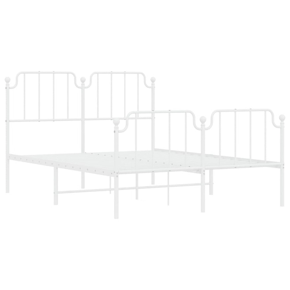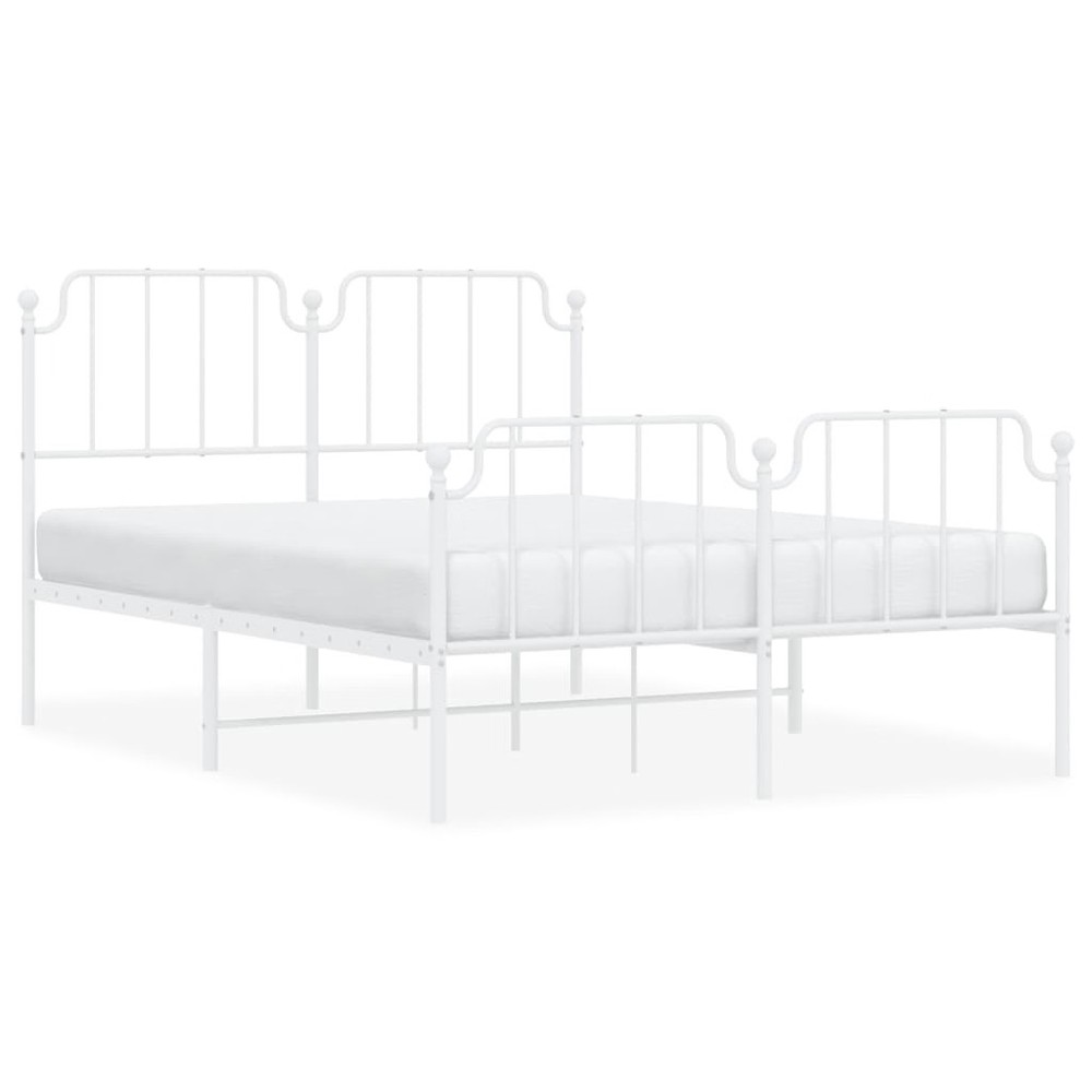 Size: 53.1 x 74.8 in This White Metal Bed Frame with Footboard gives a sleek, modern vibe to any bedroom, blending style with practicality. Made from strong powder-coated steel, its lovely finish not only looks great but also promises long-lasting use and easy care. Durable Frame: Made of high-quality powder-coated steel, this bed frame easily supports up to two adults, making it perfect for couples or guest rooms. Loads of Storage: With a smart design that maximizes space, the bed frame offers a good amount of under-bed storage to keep your bedroom neat. Modern Aesthetic: The smooth, white finish and minimalist style create a fresh look that pairs with all kinds of interior decor, making it versatile for any room. Breathable Material: The materials used allow for airflow to keep your sleeping surface fresh and comfortable. Easy Assembly: This bed frame comes with clear instructions and can be put together with minimal tools, making it easy for two people to set up quickly. Color: White Shape: Rectangular Material: Metal Steel Finish: Powder-Coated Indoor/Outdoor: Indoor Only Cover Included: No Room: Bedroom Capacity: Double (53.1 x 74.8 in) Maximum Number of People: 2 Dimensions: 55.9 x 77.2 x 40.2 in (W x L x H) Surface Height: 40.2 in Leg Height: 11.8 in Weight: 45.75 lbs Swings: No Delivery Contains: Bed frame Assembly Required: Yes Recommended Number of People for Assembly: 2