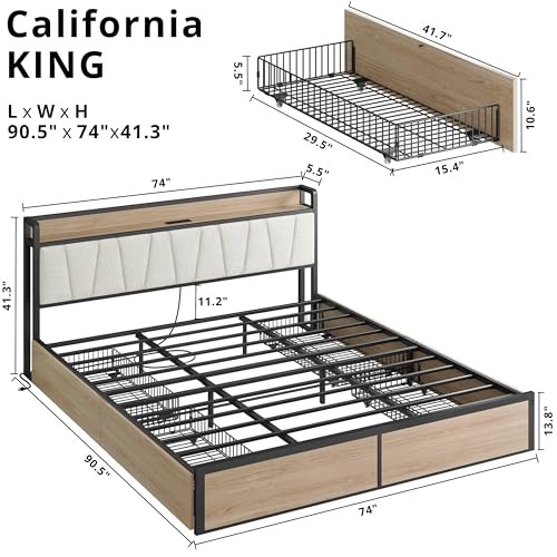 Return Policy Fast Delivery Trusted seller California King Bed Frame with 4 Storage Drawers, Platform Bed with Charged Headboard, Sturdy and Stable, No Noise, No Box Spring Needed, Easy to Install, Wood and Cream Product Description Sturdy and Only One Box: Robust metal slats reinforce the sturdiness and durability of the california king platform bed structure. Strong and stable support for a healthy back, reducing the risk of back pain and discomfort Storage and charging : Storage headboard with outlets that make charging and common small items such as phones, glasses, and books within easy reach Practical Storage Bed: 4 large storage drawers can provide extra storage space without taking up extra space helping you keep your bedroom neat and organized Rustic California King Bed: Its neutral color and clean lines make it the perfect complement to any decor style. Whether you're looking to upgrade your bedroom or furnish a guest room, this bed frame is the perfect choice Save Time: Putting together this california king size bed frame is a breeze with the included instructions, tools, and easy to handle wrenches and bolts Shipping Returns Payment Shipping Shipping is FREE to all addresses other than APO/PO boxes in the lower 48 states. All our stock ships from US-based warehouses. Shipped via USPS or UPS (depending on location and package weight) Unless stated otherwise, all orders will ship within 24-72 hours of your payment being processed. Check our feedback to see the great reviews of FAST shipping we offer. Returns Seller does not accept returns Payment We currently accept payment via eBay managed payments only. Once payment is cleared, we will dispatch your shipment within 1-3 business days. Please refer to the "Shipping" tab for more information regarding shipping speed to your destination.