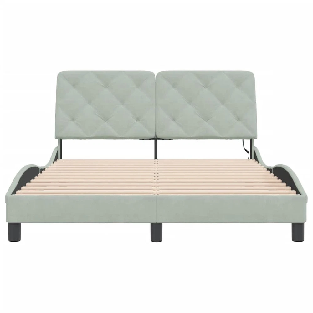 Bed Frame with LED without Mattress Light Gray 53.9"x74.8" Velvet