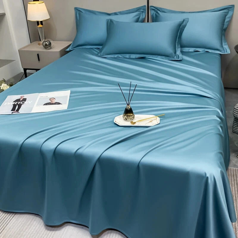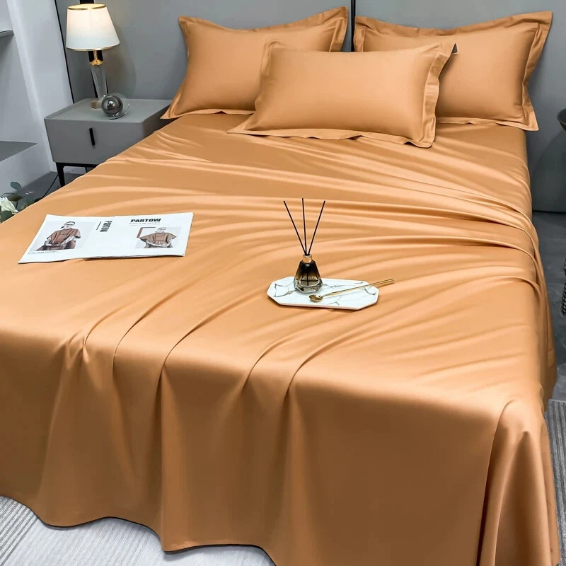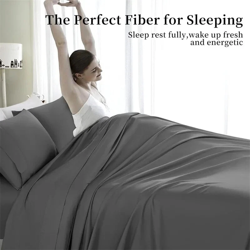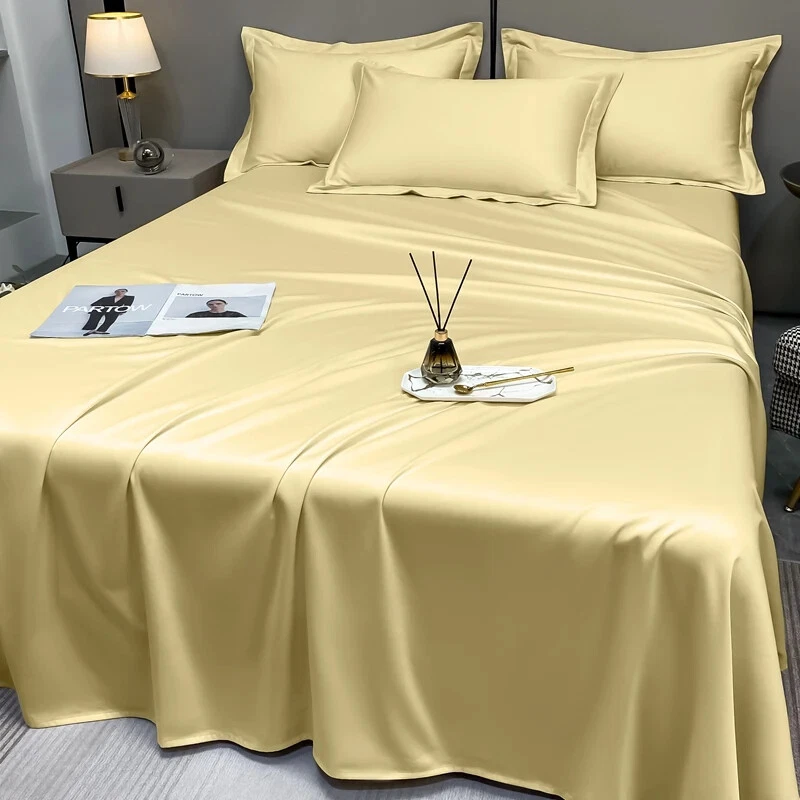 Product Size Details: →→Twin 4pcs: -----1pc Fitted Sheet 120x200x30cm (47x79x12inch) -----1pc Bed Sheet 180x240cm (71x94inch) -----2pcs Pillowcase 48x74cm (20x30inch) →→Twin-XL 4pcs: -----1pc Fitted Sheet 120x200x30cm (47x79x12inch) -----1pc Bed Sheet 200x230cm (79x91inch) -----2pcs Pillowcase 48x74cm (20x30inch) →→Full 4pcs: -----1pc Fitted Sheet 150x200x30cm (59x79x12inch) -----1pc Bed Sheet 200x230cm (79x91inch) -----2pcs Pillowcase 48x74cm (20x30inch) →→Double 4pcs: -----1pc Fitted Sheet 150x200x30cm (59x79x12inch) -----1pc Bed Sheet 245x250cm (96x98inch) -----2pcs Pillowcase 48x74cm (20x30inch) →→Queen 4pcs: -----1pc Fitted Sheet 180x200x30cm (71x79x12inch) -----1pc Bed Sheet 245x250cm (96x98inch) -----2pcs Pillowcase 48x74cm (20x30inch) →→King 4pcs: -----1pc Fitted Sheet 180x200x30cm (71x79x12inch) -----1pc Bed Sheet 245x265cm (96x104inch) -----2pcs Pillowcase 48x74cm (20x30inch) →→Double 6pcs: -----1pc Fitted Sheet 150x200x30cm (59x79x12inch) -----1pc Bed Sheet 245x250cm (96x98inch) -----4pcs Pillowcase 48x74cm (20x30inch) →→Queen 6pcs: -----1pc Fitted Sheet 180x200x30cm (71x79x12inch) -----1pc Bed Sheet 245x250cm (96x98inch) -----4pcs Pillowcase 48x74cm (20x30inch) →→King 6pcs: -----1pc Fitted Sheet 180x200x30cm (71x79x12inch) -----1pc Bed Sheet 245x270cm (96x106inch) -----4pcs Pillowcase 48x74cm (20x30inch) Product Description: All-around elastic on 30cm fitted sheet allows for snug, secure fit of most mattress sizes up to a 12” mattress depth. Premium Egyptian Cotton material is stronger than cotton, offers exceptional softness, easy to care for, affordable, light weight, wrinkle and fade resistant and feels great to the touch. Care instructions: machine wash on warm, no bleach, tumble dry low. Our Luxury Sheets. The feel of pure comfort, Silky and Soft.