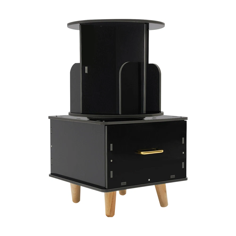 Bedside Table with Drawer, Corner High End Table, Rotating Bookshelf with Drawer ❤Welcome❤ Description If you are looking for a sophisticated and practical small bookshelf, then please look at our product. Our rotating bookshelf is designed in a 2-in-1 way, not only can it hold books, but its large drawer can also help you store other objects, helping you maximize your storage space and keeping your room tidy. Key Features Made to Last: This product is made of high-quality PVC board by carving process, sturdy and waterproof , not easy to deform, and can be used for a long time without frequent replacement. Large Capacity: It utilizes vertical space to achieve high-capacity storage, giving it more space for storing books and maximizing storage capacity. Excellent Storage: The top bookshelf is for you to store books, and the bottom drawer is convenient for you to store your personal belongings or other small objects to prevent loss. The top surface of the bookshelf can hold glasses, coffee, and other daily necessities for your easy access, realizing categorized storage. Space-saving: It has a small footprint and is suitable for placing in small rooms and corners, realizing storage and saving space at the same time. 360° Rotating Design: It is equipped with a very sturdy steel ball turntable inside, giving it a sturdy construction while allowing it to rotate 360° for easy access to your books. Easy Assembly: Simple structure, complete accessories, and detailed assembly diagram help you quickly complete the assembly and use it in a short time. Effortless Cleaning: It has a smooth surface and an open structure, so you only need to wipe the dust or residue with a towel. Protective Package: To prevent the product from being damaged during transportation, we packed it with foam and bubble bags to protect your products to the maximum extent possible. Good Customer Service: We aim to provide quality products and services. If you have problems, please feel free to contact us. We will reply and solve the problem for you as soon as possible. Details Smooth Edges: Rounded corners and smooth surfaces can be good protection for you hands. High Tier-spacing: The bookshelf is high enough (12.2in) to store tall items. Aluminum Handle: It is convenient for you to access the items in the drawer. Helpful Baffles: The baffles on the rotating bookshelf are designed to prevent items from falling. Practical Gloves: They protect your hands from injury during assembly. Tablecloth: It makes the bookshelf more beautiful while also preventing dust buildup and keeping the top of the bookshelf clean. Wooden Feet: They keep the bookshelf stable while protecting the floor from damage. Application This product can be placed in the bedroom, living room, study room, toy room, etc. as your bedside table, bookshelf, children's toy storage cabinet, fashion playthings collection cabinet, and so on. Specification Material: PVC Board, Aluminum, Steel, Wood Color: Black Process: Carving Style: Modern Assembly Required: Yes Mounting Type: Free Standing Overall Product Height: 69.5cm/27.36in Round Bookshelf Diameter: 36.8cm/14.49in Drawer Size: 40*38.4cm/15.75*15.12in Package Size: 48*46*14cm/18.9*18.11*5.51in Gross Weight: 8kg/17.64lbs Net Weight: 7.5kg/16.53lbs Package Included 1* Rotating Bookshelf 1 Pair* Gloves 1* Top Cover 1* English Installation Diagram Other Accessories for Assembly Notes Please note that this product does not include books or other items. Please confirm the size before purchasing. Please allow the slight color difference caused by the shooting light and 1-3cm error due to manual measurement, and make sure you do not mind before ordering. *Description* Online shopping no longer requires confusion. ?? Beyond your expectations, let's work together to create a perfect shopping experience! ↓↓↓↓ HAVE A NICE DAY ! Payment Delivery details Terms of sales About us Contact us Payment We accept ebay payment 。 Fees such as import duties, taxes are not included in the item price or shipping costs. These charges are the buyer's responsibility. Delivery details Shipping: 2-9 working days to: USA Terms of sales We maintain high standards of excellence and strive for hundred percent customer satisfaction. Feedback is very important to us. We hope that you contact us immediately before you give neutral or negative feedback, so that we can address your concerns. It is impossible to address issues if we do not know about them! About us Your satis faction is our ultimate goal. We work hard to earn your trust and future business. Our certified technicians have tested each item before shipping. The unit comes with 1 year limited warranty on all manufacturing defects. a) If you receive a defective item, you may return it or ask for a discount. Please contact us within 14 days after you receive the package. b) What you returned must be intact and in its original packaging as re? u. Customer is responsible for shipping costs of the returned item. c) We will cover the cost of shipping back t with the shipping rate indicated in the registration page. We will send you a new unit or refund the full payment you paid. Thank you. Contact us Business Hour Business Hour: Monday To Friday: 8:30 AM to 5:00 PM (Beijing China time) Due to time zones, our reply to your questions may not be immediately. But within above working time, we will reply your email within 24 hours. If it's non-workdays, please kindly be patient and wait till Monday. Please contact us with ebay message. Please feel free to contact us if you have any questions. Monday To Friday: 8:30 AM to 5:00 PM (Beijing China time) Due to time zones, our reply to your questions may not be immediately. But within above working time, we will reply your email within 24 hours. If it's non-workdays, please kindly be patient and wait till Monday. Please contact us with ebay message. Please feel free to contact us if you have any questions. Warranty 5 Years Manufacturer Warranty