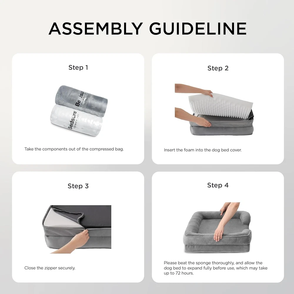 Bedsure Orthopedic Dog Bed Large 35 Inch Waterproof Washable Pet Sofa Grey Brand BEDSURE Features Waterproof & Easy Care: The durable foam mattress is encased in a waterproof liner to fully protect the foam from spills, water damage, or accidents. Remove the zippered cover in seconds and machine wash for easy care. Tested & Pet Approved: This supportive Pet bed is wrapped in our velvety soft flannel fabric, offering soothing comfort that your furry friend will find cozy and relaxing. Orthopedic Support: Our orthopedic cat sofa is designed to give your pet unparalleled support for a deep, dreamy sleep. High-density egg-crate foam helps distribute weight evenly and provides the perfect amount of pressure relief and joint support. Enhanced Comfort: The 4-sided bolster design promotes ultimate comfort and security, offering your pet a variety of cozy positions to snuggle. The cushioned bolster shape is deeply filled to support your pet’s head and neck for a more restful sleep. And the lowered entrance protects your pet's knees and promotes accessibility. Pet Safe Materials: This standard 100 by OEKO-TEX(24.HCN.46956) certified pet bed consists of CertiPUR-US certified foam and luxurious flannel, creating a safe and comfortable space for your furry friend to rest and recharge. The non-skid bottom reduces slips and protects your dog. Our Business 100% Customer Satisfaction We go above and beyond to ensure you receive the best level of service. Returns We want you to be happy with your purchase, however in the rare occasion that you are not, please let us know and we will contact you to arrange either a collection or a refund. Please CONTACT US before leaving any negative feedback and we will promptly sort out any issue with your order. 8201658