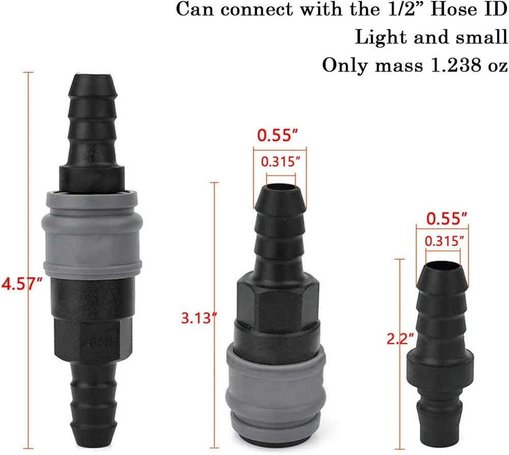 Store New Arrivals Add to Favorite View Feedback Contact Beduan Quick Disconnect Set, Air Hose Fitting Quick Connect Coupler, 1/2" Barb Description Item model number 1xy-10620-shs Part Number 1xy-10620-shs Batteries Required? No Size 1/2" barb Brand beduan Material Plastic Connector Type Barb Item Weight 0.634 ounces Thread Type NPT Batteries Included? No Number of Pieces 1 Exterior Finish Brass Package Dimensions 3.3 x 2 x 0.5 inches Manufacturer Beduan C - type quick insert joint can replace push to connector. Provide higher sealing, internal double ring air tight design, one ring buckle one ring. Plastic steel body, light weight, hardness can be rolled with the big car without damage. No rust in any environment. Air consumption / 11.6CFM, Maximum working pressure / 214PSI, Burst pressure / 800PSI, Tension / 58KG, Working temperature range / -13F ~122F High temperature resistance, wear resistance, no rust, not easy to leak. The shell is made of environmentally-friendly nylon engineering plastic, rust-proof, insulating, lighter, and has excellent anti-aging, low-temperature, anti-wear properties. Beduan is a excellent brand that sells pneumatic accessories, including different type of air compressor fittings, Air hose, air pressure gauge, air chuck, safety blow gun, tire gauge etc. These products can be used in a range of applications in various industries, such as automotive, fleet maintenance and manufacturing. ABOUT US We offer the best prices around on high quality products. Our E-store includes media such as books, movies, music and games while offering electronics, toys, sporting apparel, clothing, tools, general home, garden items and more. SHIPPING We are always working hard to ensure your package arrives as soon as possible. Please understand that some factors like weather, high postal traffic, and the performance of shipping companies are outside of our control. We offer free shipping to the lower 48 states and ship within 2 business days of payment, usually sooner. We do not accept P.O. Boxes. Please provide a physical address. RETURNS We offer a 30-Day Return Policy on items which you are not completely satisfied with. You have the option for a full-refund or an exchange of the item. No returns are available on items shipped outside of the USA. PAYMENT We accept PayPal. CONTACT US This page content is yet to come Please ad us to your favorite seller and visit again later Thank You CUSTOMER SATISFACTION We try our very best to make sure every customer is completely satisfied. If there's a problem, message us! We're happy to help.