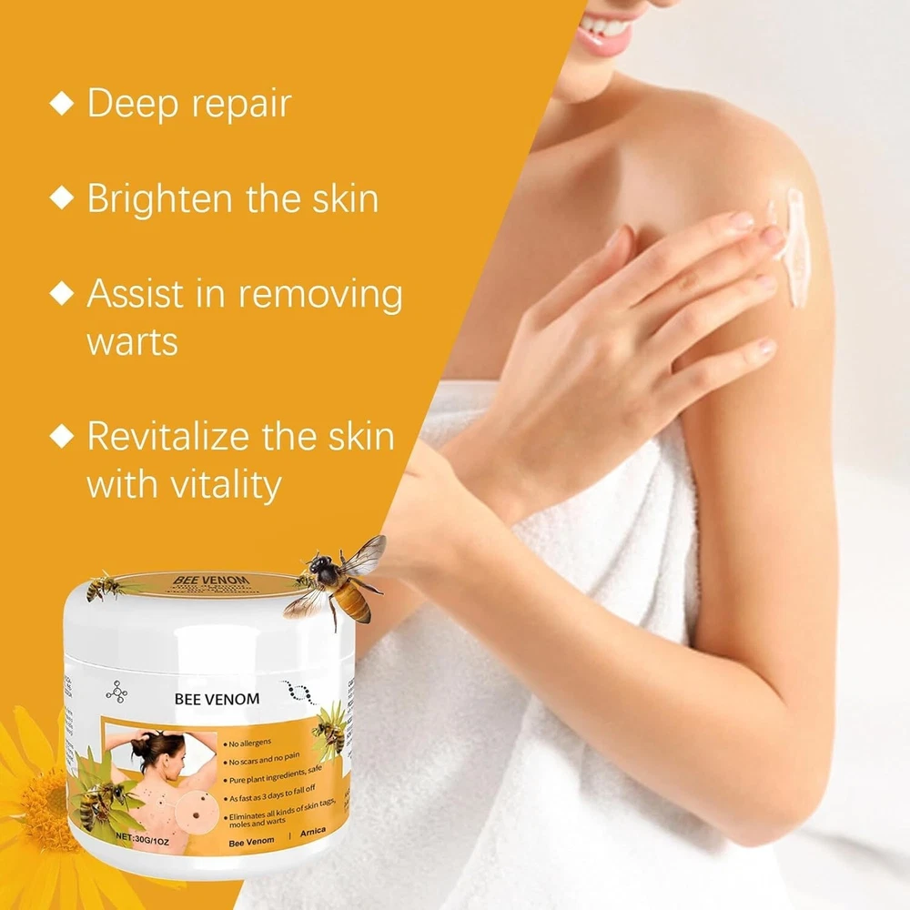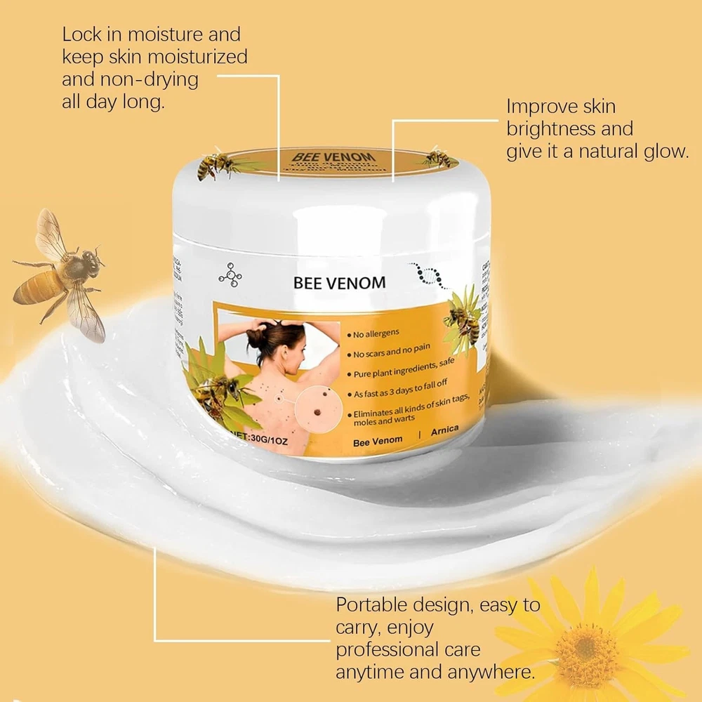 Bee Venom Cream, Bee Venom Moisturizing Cream,Bee Venom Moisturizing Gel 30ML(2pcs) 2PCS Bee Venom Repair Cream, Hydrating Moisturizing Cream, Natural Honey Bee Venom Repair Cream Remove Spots for Men&Women, Bee Venom Moisturizing Cream for All Parts of the Body (2*30g) ✅ 【Natural Ingredients】Bee Venom Moisturizing Cream contains natural extracts, effective, and safe ingredients. ✅【 Widely Applicable 】Our Hydrating Bee Venom Cream is applied to all parts of the body such as knees, neck, back, waist, and wrists, soothes your skin. ✅ 【Easy to Carry】Bee Venom Cream is easy to carry around, simple to use, and can be used anywhere. Our Cream significantly improved quality of life in people. ✅ 【How To Use】First wash and dry the area to be applied. Then Simply Apply Gently to the Skin, Massage Completely and Absorb. Apply it 3-4 times a day for 7-10 days. ✅ 【Suitable For All】Our Bee Venom Cream can help us to maintain good feeling, is suitable for commuters, students, sports enthusiasts and retirees. Note: This Product is designed to deliver optimal results, offering high-quality performance and satisfaction. Please note that individual experiences and outcomes may vary based on personal use, preferences, and unique circumstances. For best results, we recommend following the provided guidelines and ensuring the product is used as intended. Product result may vary for every individual. NOTE Hello Buyer, Thank you for your interest in our product! Please note that I am a reseller, and your order will be shipped directly from our nearest warehouse to your address. If you have any questions or need assistance, feel free to reach out.