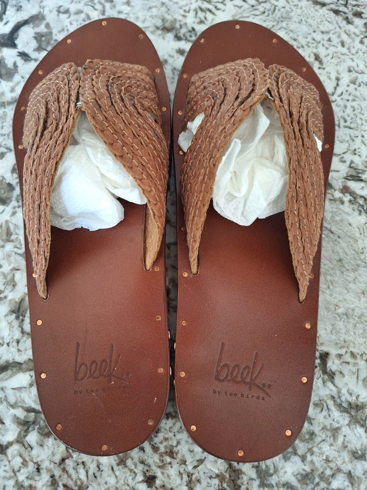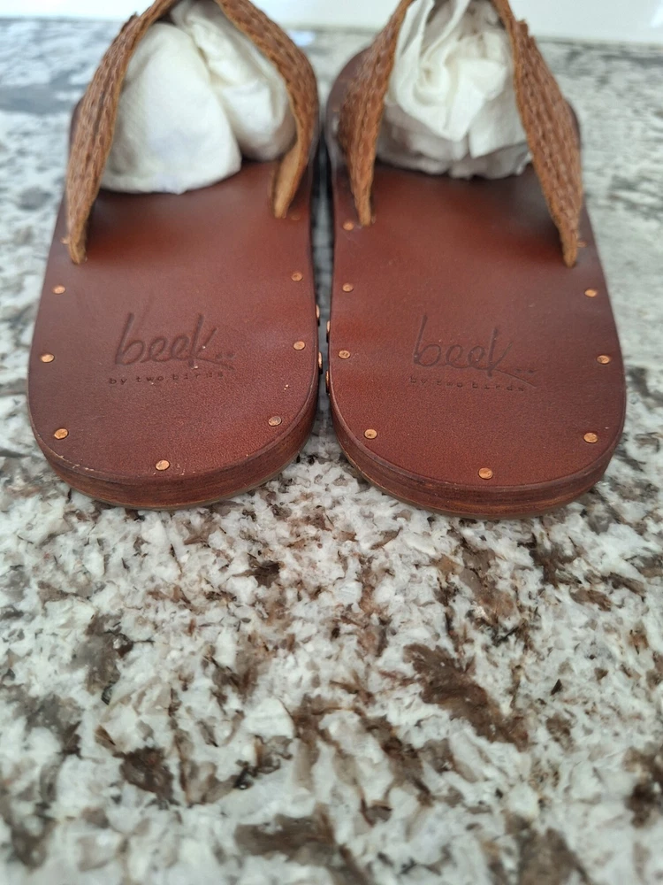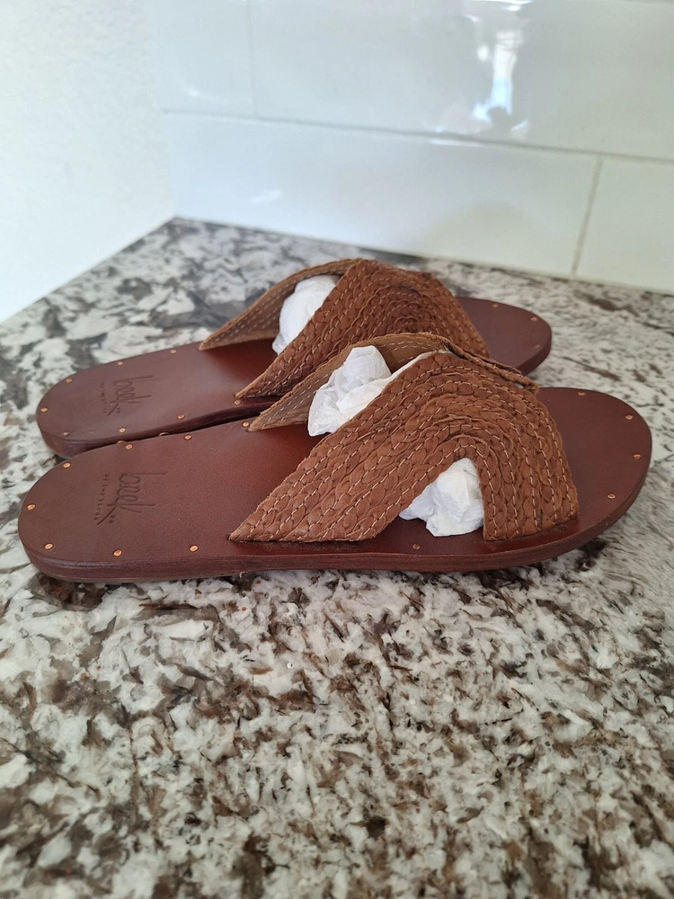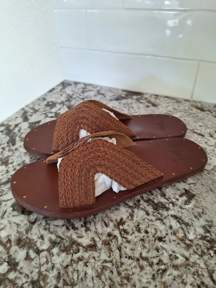Beek brown leather cross strap sandals size 7