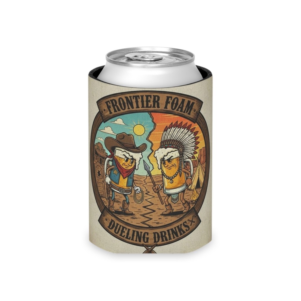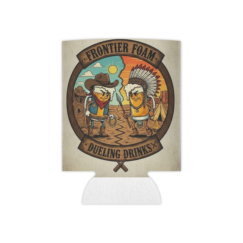 These foam can coolers bring a playful, rustic spirit to backyard cookouts and campsite evenings. The print shows two dueling bottles in a sun-baked frontier scene — cowboy hat, feathered headdress, dusty trail and all — rendered in warm, vintage tones that feel like an old saloon poster come to life. Slip one over a regular or slim can to keep hands dry and drinks steady while you laugh around a fire, tailgate before the game, or pass cold ones at a cabin poker night. The soft foam interior grips the can; the vibrant, edge-to-edge print resists fading so the art keeps looking lively through seasons of use. Lightweight and quick to pack, these coolers tuck easily into a cooler bag or glove box and set the tone for relaxed, nostalgic gatherings. Product features - Durable 100% polyester exterior with bright, edge-to-edge print - Soft 100% foam liner for a secure, non-slip grip - Vivid, long-lasting colors using advanced printing techniques - Lightweight and easy to carry or store - Available in Regular and Slim can sizes Care instructions - Wipe with a damp cloth, air dry or use a soft, non-abrasive cloth