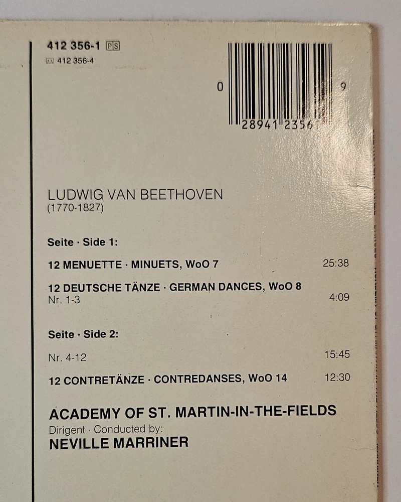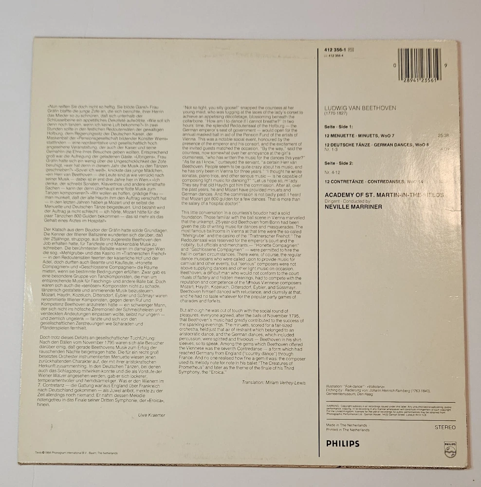 Beethoven - Tänze-Dances - Academy of St. Martin-in-the-Fields - Vinyl LP - 1984 Please review all photos for condition before buying. Different devices and lighting may result in variations from the color shown on your screen. I will combine shipping on multiple items. If you are the winning bidder on multiple items without free shipping, please wait for an invoice before paying. Reduce*Reuse*Recycle Your purchase will likely be shipped in previously used packaging with a company's name or logo visible. 10% of all sales benefits First Coast No More Homeless Pets in Jacksonville, FL! Dive into the graceful world of classical music with Beethoven's "Tänze-Dances" as interpreted by the esteemed Neville Marriner and The Academy of St-Martin-in-the-Fields. This Vinyl LP, released in 1984 by Philips with catalog number 412 356-1, offers a sublime auditory experience of Beethoven's dance movements, showcasing the finesse of the composer's craftsmanship and the virtuosity of the performing orchestra. Enthusiasts of classical genre will appreciate the import features of this record, as well as the authentic touch of the Netherlands-manufactured vinyl. With a 12" record size spinning at 33 RPM, this LP captures the essence of the early and Viennese classic era, making it a noteworthy addition to any collector's treasury or a perfect start for new aficionados.