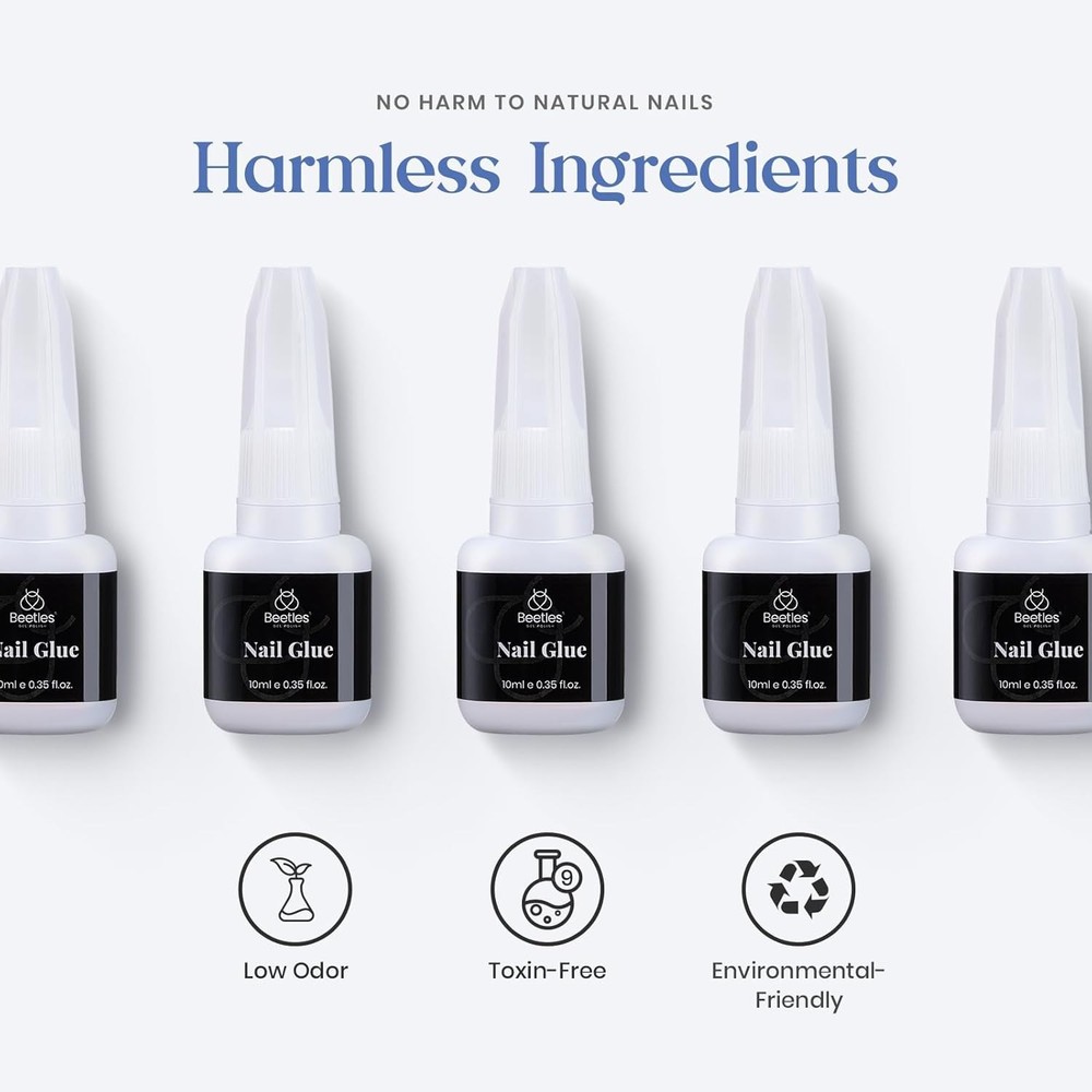Nail Glue No Uv Light Needed:Long lasting and durable large volume nail gel 3 pcs (10ml/0.35 ounce per bottle), the gel is more viscous, good toughness, the correct use can ensure that the false nail tip / other small pieces of nail on the nails for a long time to maintain more than 28 days. Super Strong & Widely Used Nail Glue : Beetles nail glue is strong,durable and long lasting for press on nails, false nails, soft gel nail tips.The nail tips glue can also glue some small rhinestones or beads or other tiny nail docor. Quick Dry & Easy to Use Press On Nail Glue : Beetles nail tips glue with fine precision brush applicator is easy and convenient to apply,no need for nail lamp,just 5 seconds to glue on nails. Healthy Ingredients Acrylic Nail Glue : Beetles glue for nails is made of Ethyl Cyanoacrylate, no harm to your nails.Safe manicure nail supplies. REMINDER : Please read the Instruction or Products Description for more details. Beetles gel glue is only used for nail and Non-direct contact with the skin. If you feel unwell, instantly stop using and seek medical attention. Product description