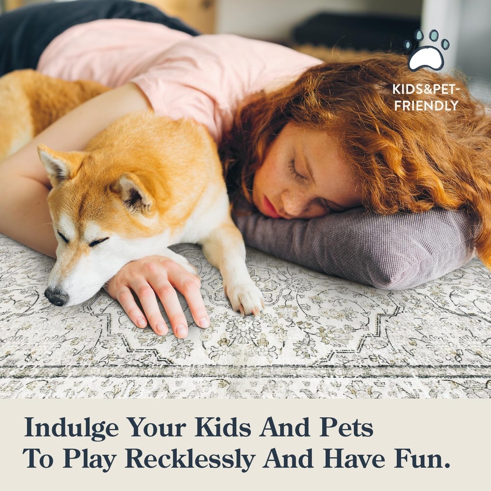 Oriental Area Rugs Washable 3x5 Entryway Rug Non-Shedding Traditional Living Room Bedroom Rugs Non-Slip Distressed Vintage Soft Low Pile Floor Rugs for Kitchen Entrance Dining Room Office Playroom This vintage rug features a unique florals borders pattern and neutral muted beige blue gray terrocotta colors for an overall look and unique texture. Made of high-quality faux wool materials, this washable rug is sturdy and easy of cleaning. Ultra-thin and non-slip design is perfect for pets and children to play and draw on baby rugs, easy to clean, provides just the right amount of comfort, soft and cushioned underfoot; Low profile is perfect for placing under front door and furniture, and will not easy to get shedding. Features: Washable Rugs; Non Slip Runner Rugs; Ultra-Thin Rugs; Hallway Runner Rugs; Kitchen Runner Rugs; Bedside Runner Rugs; Laundry Room Rug Runners; Bathroom Runner Rugs; Entry Rugs; Oriental Rugs; Soft Rugs; Living Room Rugs; Game Room Rugs; Vintage Rugs; Dorm Rugs; Home Office Rug. Sturdy and Stain-Resistant: The rug non-slip backing is safe for kids and pets activities. Soft and skin-friendly surface is suitable to lie on it. Children can walk barefoot on the rug or stick their toes in. Design: Classic Oriental Traditional style, fine workmanship, a variety of patterns and colors to choose from, can be used for any room decoration. Available in Sizes: 2.5'x8', 3'x5', 5'x7'. Available in Colors: Beige, Terrocotta, Blue, Gray. 【Embrace Oriental Elegance】: Transform your space with the mystic charm of our decorative boho vintage long runners for hallways 10ft, weaving classic Oriental decor style right into your home! The bold floral border patterns and neutral muted beige colors will brighten your room spaces. 【Ultra Soft & Low Pile】: Our foldable kitchen runner is 0.31" in thickness, super soft on barefoot; Enjoy the sleek sophistication of low pile; perfect for easy door movement and seamless vacuuming, and will not creat tripping hazards; reinforced edge,stain-resistant,non-shedding. 【Safety Non Slip】: With a non-slip TPR rubber backing, our beige carpet runners for hallways 10ft is the safe choice for homes bustling with playful kids and pets; relax with a peace of mind; the rug may arrive with some creases, roll the rug in the opposite direction to allow the creases time to flatten and set. 【Kids and Pets Friendly】: Skin-friendly material, comfortable and safe for kids to roll around! This Oriental indoor runner is designed with ultra-thin short pile, food crumbs and hair will not get embedded in it, very suitable for high-traffic areas such as living rooms, dining rooms and bedrooms. 【Machine Washable】: The washable rug runner is lightweight and easy to fold and throw in the machine washer for cleaning! Perfect for families with frequent gatherings, multiple pets and children. Stains and pees can be removed with a small handheld vacuum, broom or rag.