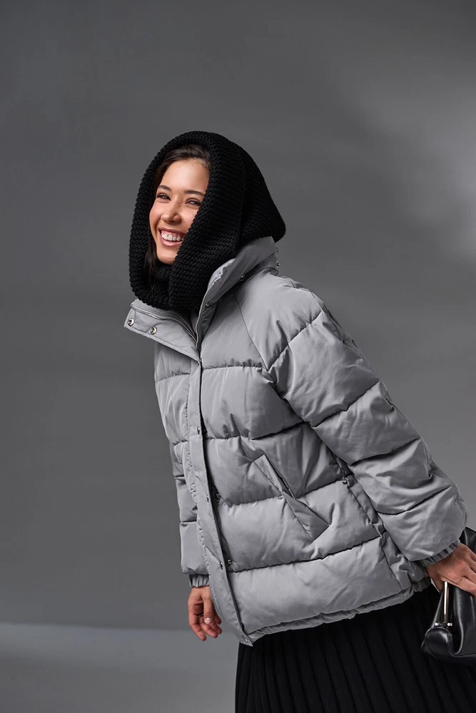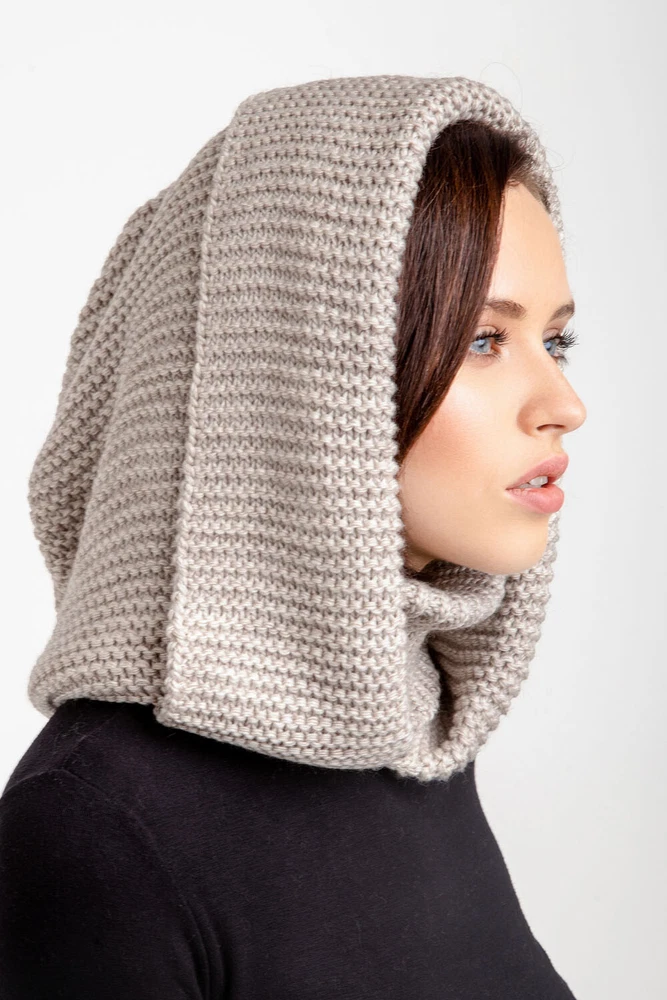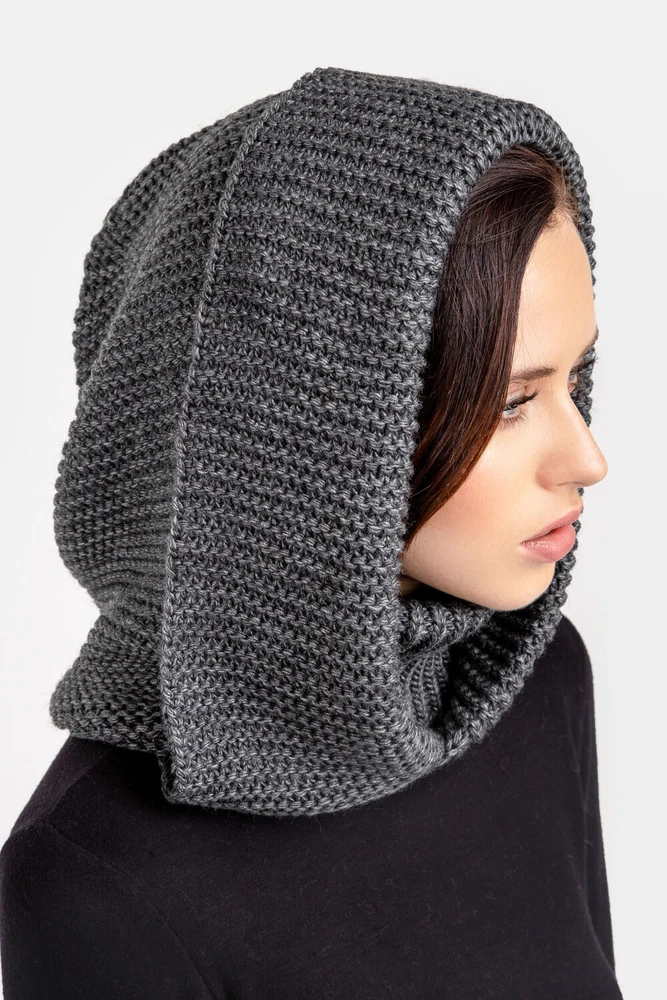 Grey Hooded Scarf, Knit Hoodie Scarves, Womens Snood, Warm Hooded Cowl, Wool Head Scarf, Trend Scarf, Outdoors Gift The multifunctional winter accessory is made of semi-woolen yarn. The model consists of an elastic collar that covers the neck well and a spacious hood in a textured weave. The elegant accessory has a wide lapel for extra warmth. Leave this snood on after you take off your jacket, it will become a stylish addition to a pullover or sweater. A super soft and cozy hooded scarf. Product details: 70% acrylic, 20 % mohair, 10 % wool Width - 14 in Length - 20 in I did my best and send my beautiful hoodes to the Fulfillment center in USA to minimize shipping time for you. Now shipping time will take about 3-5 business days among USA and about 7-10 business days to Canada