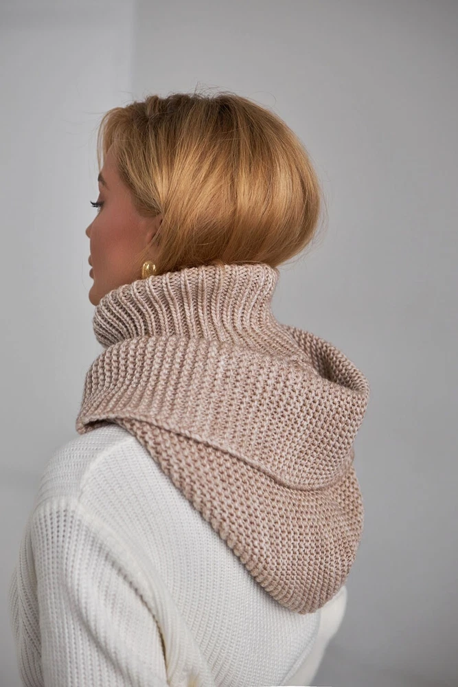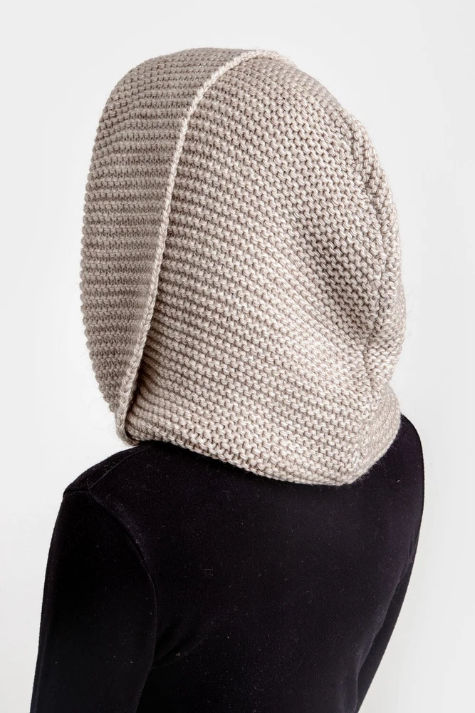 Beige Hooded Scarf Knit Hoodie Scarves Womens Snood Hooded Cowl Wool Head Scarf