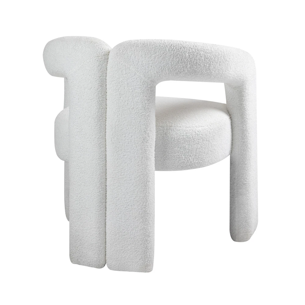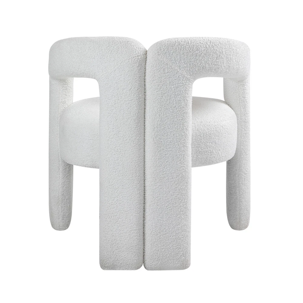The chair is made of high-quality teddy fabric, thick fabric, super wear-resistant, non-fading, non-irritating, and friendly to the skin of adults. The interior is padded with a high-density sponge to provide you with a comfortable sitting and experience. strong bearing capacity, and high compressive strength, can withstand at least 330 pounds of weight Easy to Assemble: This modern dining chair comes with detailed installation instructions, you can easily complete the assembly process. If you encounter any problems, our customer service team is always ready to help you. Comfort First: This chair is designed with comfort in mind. Sitting on it, you can feel the softness and elasticity of lambswool as if surrounded by clouds. STABLE CHAIR LEGS STABLE CHAIR LEGS LAMB CASHMERE FABRIC LAMB CASHMERE FABRIC HIGH SPONG CUSHION HIGH SPONG CUSHION HALF WRAPPED BACKREST HALF WRAPPED BACKREST