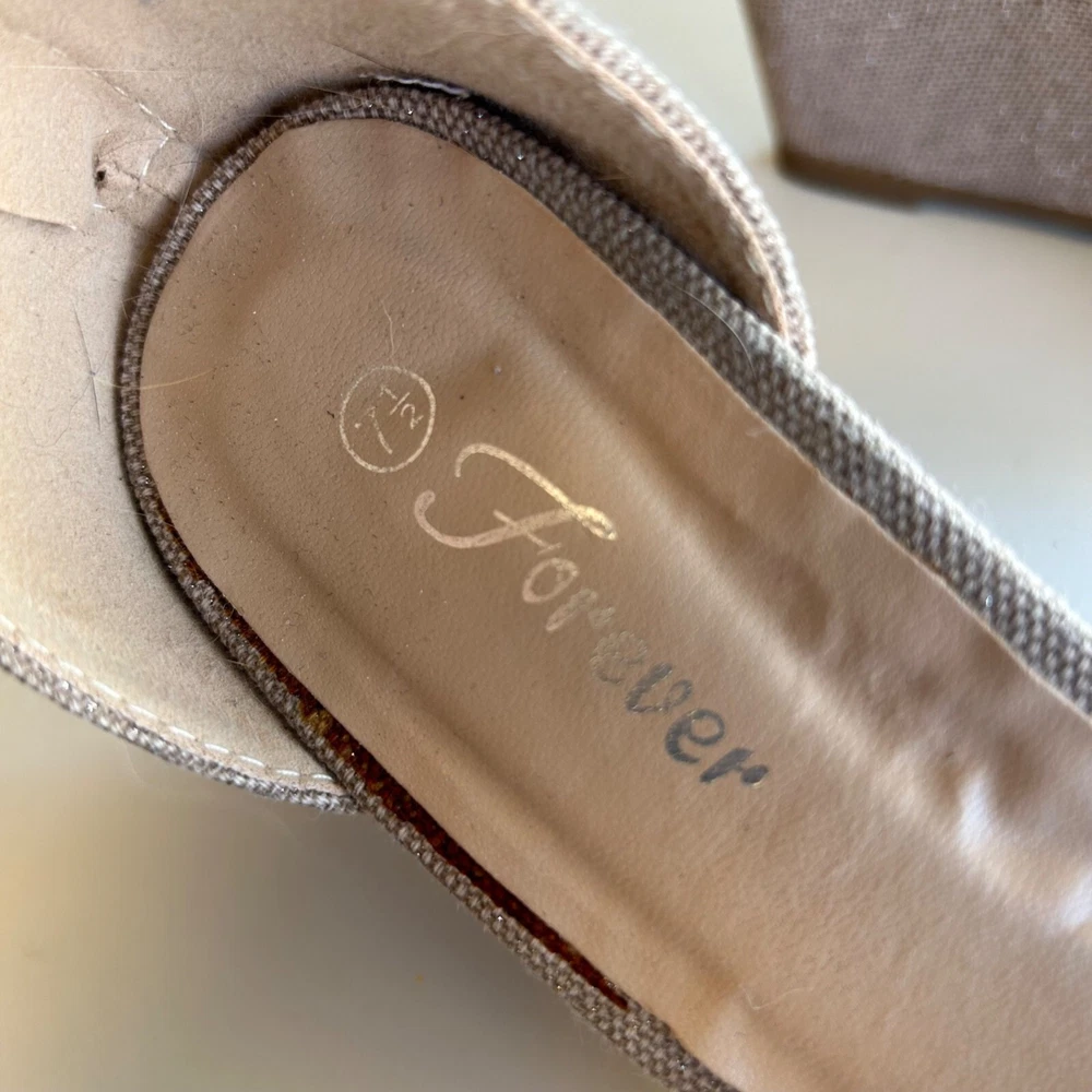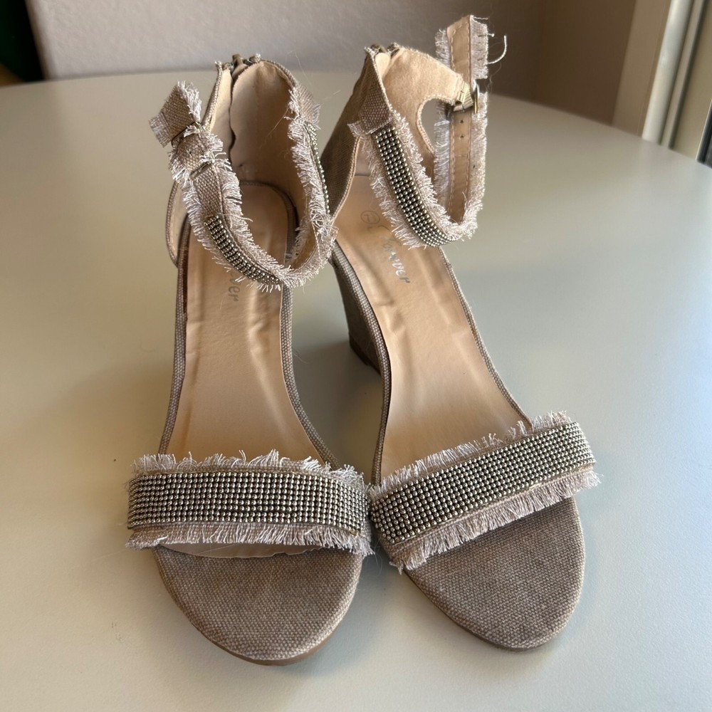 These wedge sandals from Forever combine elegance with comfort, featuring a chic frayed design and a sparkling rhinestone strap. A versatile choice for both casual and semi-formal settings, these sandals provide a stylish boost in height without compromising comfort. • Rhinestone embellishments • Frayed edges • Zipper closure • Wedge heels for added height • Secure ankle strap Size: Womens 7.5 Condition: Pre-Owned Good