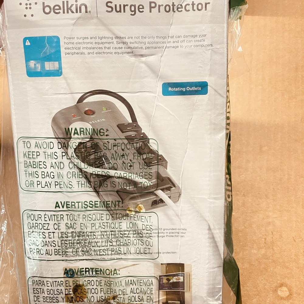 Belkin Pivot Plug Surge Protector 12 Outlets 8 ft Cord 4320 Joules, Damaged Box.