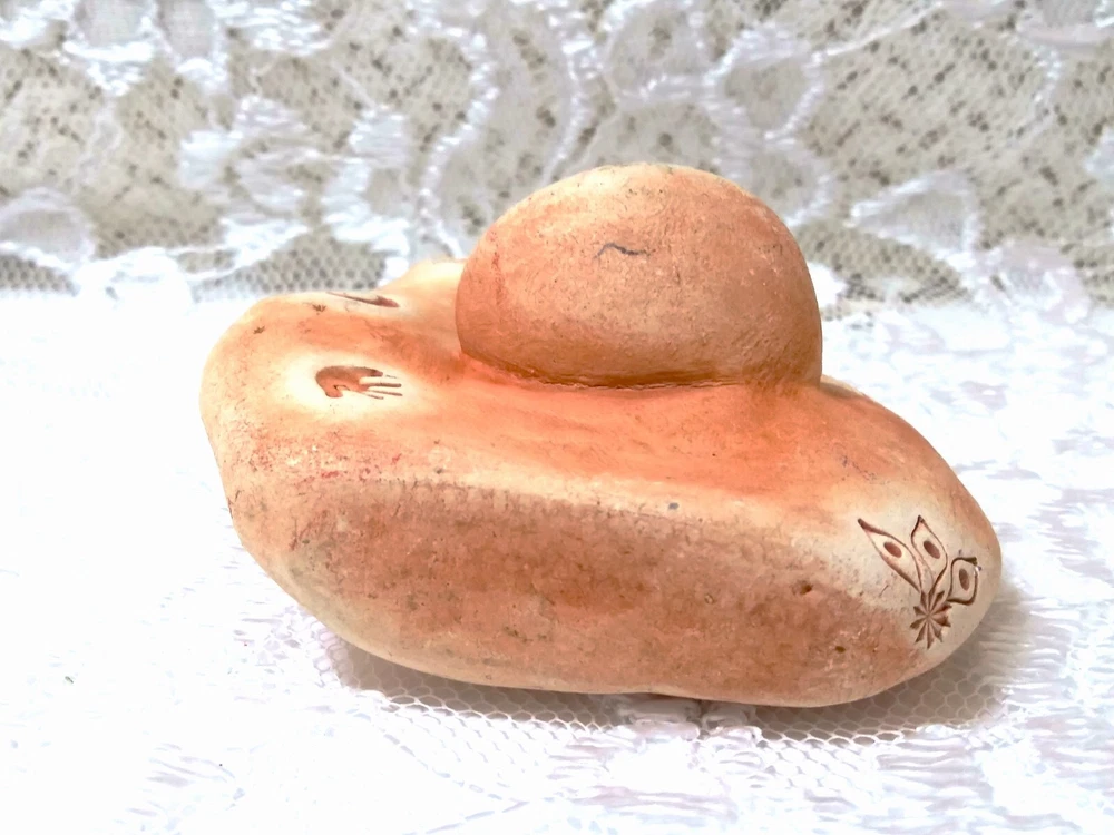 Bell Pine Art Farm Sisters Clay sculpture 1.5"D x 2.5"W x 2.5"H Excellent Used Condition Crafted with meticulous attention to detail, the Bell Pine Art Farm Clay Sculpture encapsulates the essence of sisterhood in a beautiful abstract form. This small-sized, original piece showcases the artist's skill in pottery, bringing to life two sisters entwined in a gesture of unconditional love and support, captured within the sculpture's elegant curves. The artwork is an expression of artistic vision, rendered in a medium that allows for a tactile experience of the piece's texture and form. It stands as a testament to the themes of art and the profound bond of sisterhood, making it a thoughtful gift or a cherished addition to any art enthusiast's collection. Per the Bell Pine Art Farm website, this sculpture represents "Sisterhood: The bowl of female wisdom contains deep knowledge of our connnection to ech other..."