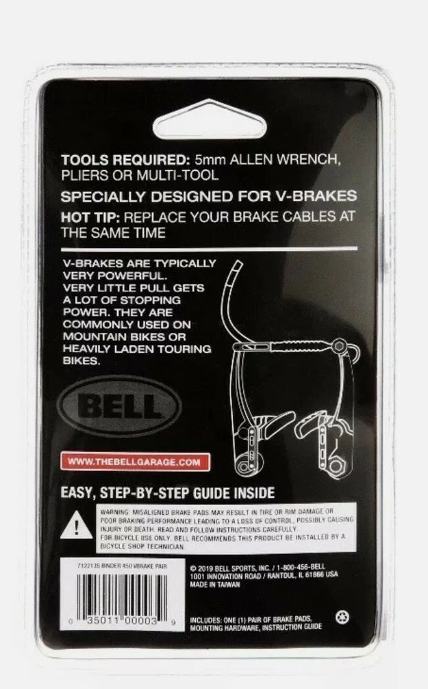 Bell Sports Binder 450 Replacement Bicycle V-Brake Pads, Black Enjoy riding with the peace of mind that your brakes will perform properly when needed to stop with these Bell Sports Binder 450 V Brakes Pads. They include raised ribs that provide you with the ability to slow down in any and all weather conditions. These black replacement V-style rubber brake pads are suitable for performance based mountain or comfort bikes. Bell Sports Binder 450 Replacement V-Brake Pads, Black: Replaces V-brake pads Ideal for performance riding Replacement V brakes with raised ribs All weather stopping power Easy to install brake pads Please visit my store for more items https://www.ebay.com/str/ thegoodmanservice ABOUT YOUR ORDER All orders are processed and shipped within 24 business hours after receiving payment (excludes weekends and holidays). All returns must be returned in the same condition as it was received. Include all original packaging such as boxes, tags, etc. Terms and Conditions: Payment: We accept PayPal payment only! Payments must be made within 2 days after you have won and committed to item purchase. We reserve the right to cancel the transaction if timely payment is not received. We ship to any VALID address, please add your shipping address into your PayPal account prior to make purchase We DO NOT change delivery address after payment is made or while en route to original . If your shipping address is not the one listed on your payment, we can help you to cancel the order first and place a new order with correct address. Serious buyer only. Non-paying bidder will be reported to ebay and ebay unpaid strike will be followed. Shipping: Winners within the U.S. continental 48 states: Standard shipping is USPS Service. Please allow approximately 3-10 business days for delivery depending on your location. Expedited shipping is available with surcharges. International winners: Shipping will be Calculate by eBay international standard delivery service plus $10.00 insurance is required. We may help to claim item as low value gift, but buyers are responsible for the customs duty if any. Warranty is provided by manufacturer. We DO NOT ship to APO, AFO addresses. Please select your physical address instead during checking out. We usually ship out your order within 1 business days. Return Policy: Return must be requested within 3 days of item delivery. Buyer is responsible for return shipping. Item MUST be in the same NEW condition and packaging 20% of original selling price will be charged for returned item as reinstock fee. We DO NOT waive restock fee under any circumstances. Any type of mail fraud will lead to legal ramification. Refund will be processed after we receive the returned item and verify its status. We reserve the right to charge extra fees if item returned is damaged or intentionally abused. We reserve the right of final explanation of the return policy Feedback -At GoodMan Service we strive for 100% customer satisfaction. If you are not satisfied do not leave negative feedback in retaliation for a defective product or something you were not expecting. Please just contact us through Ebay messages and we will quickly resolve the matter. Also always remember to leave 5 stars for each of the 4 categories when leaving feedback.