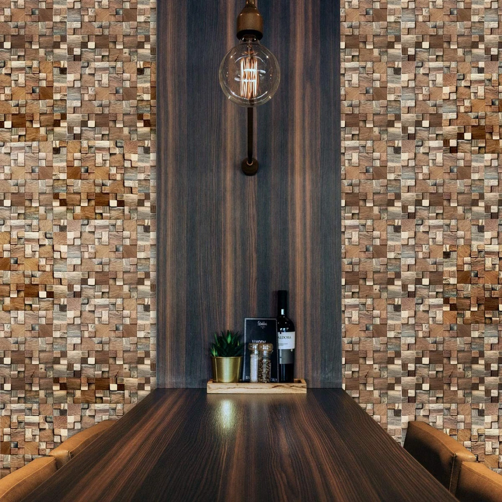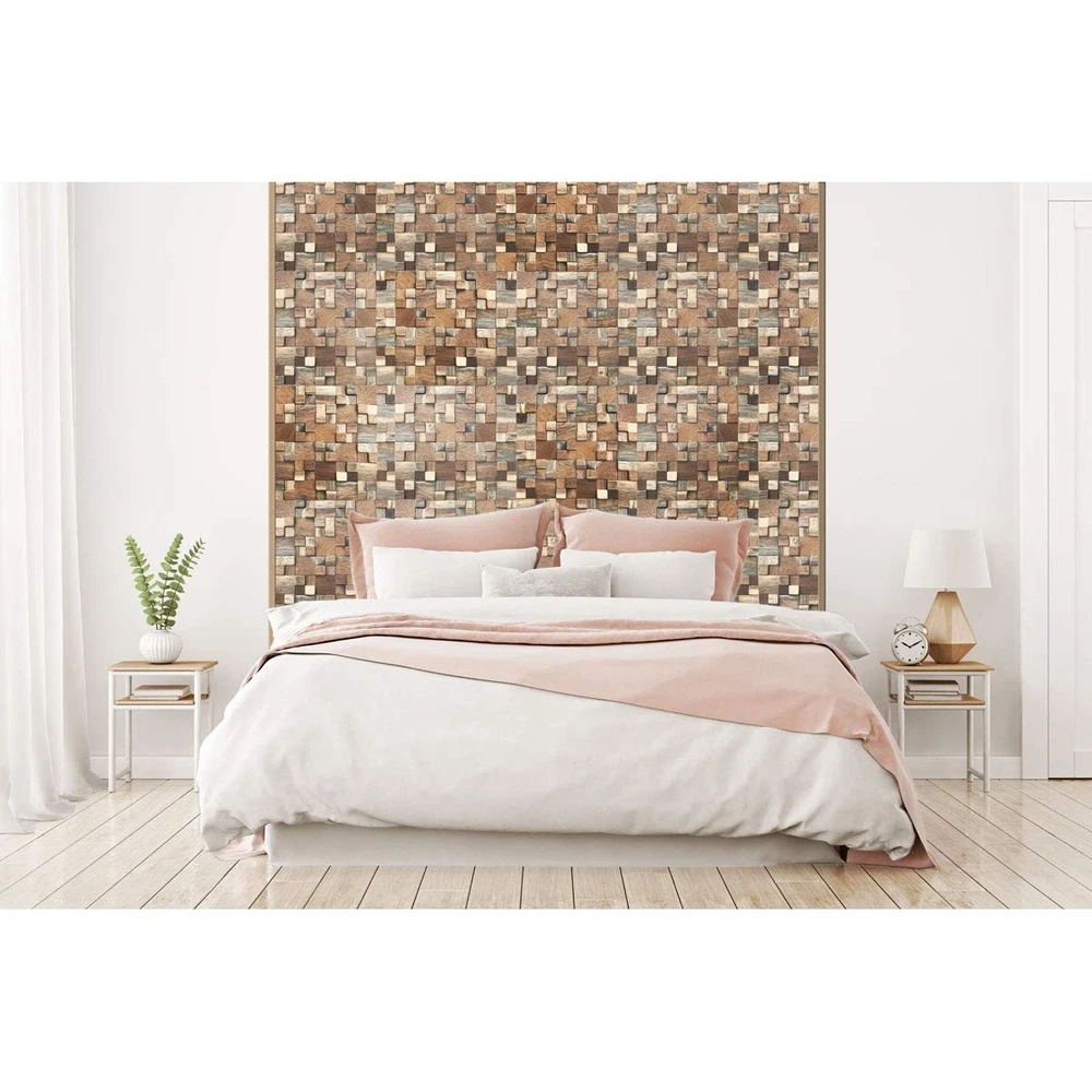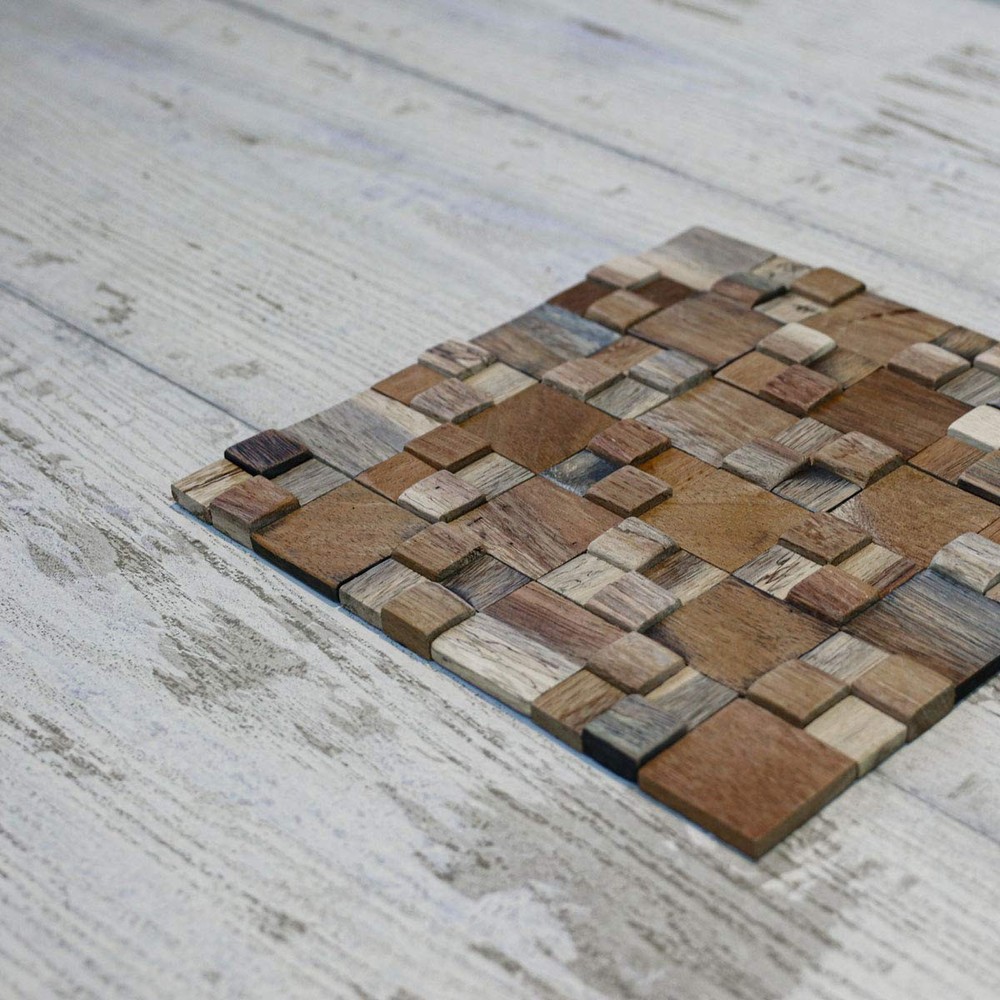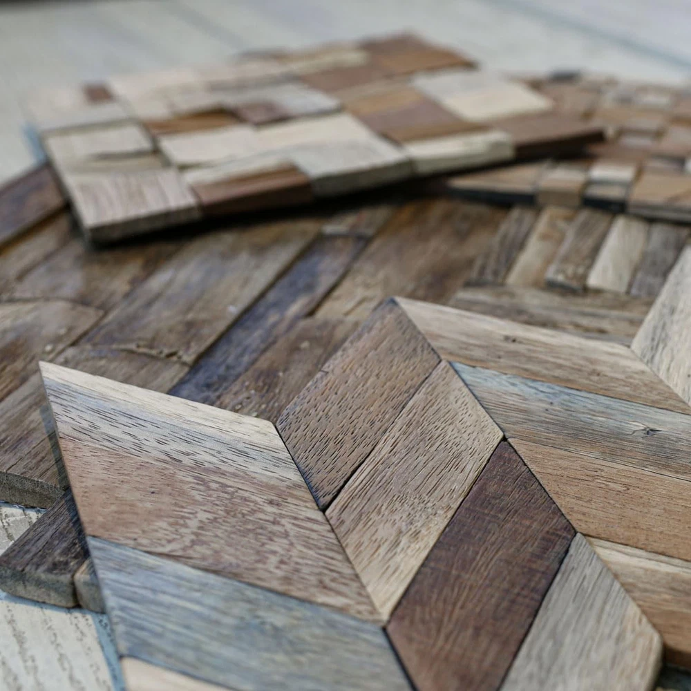 Dimensions: 11-7/8 in. Width x 11-7/8 in. Height x -1/2 in. Projection x 0.98 Sq. Ft. Mesh mounted wall tiles for easy DIY installation Great for feature walls, headboards, furniture, cabinetry and more Durable and unique decorative wall panels. Reclaimed boat wood with varying natural wood tones Can be installed either vertical or horizontal for endless designs. Wall panels can be installed on different types of surfaces including textured walls, backsplashes and ceilings
