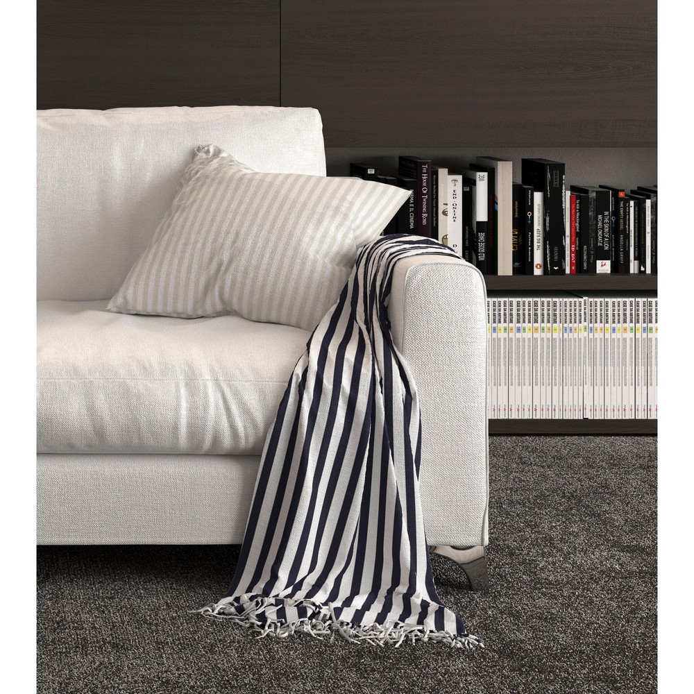 Our beach blanket with tasselss are not just for beach goers, don't let the name fool you! Designed for the beach because the fabric is sand resistant and multi-functional for any outdoor gathering like picnics and sporting events. Our artisan designed blankets are ideal for seating or to use as a fashionable cover up. Free Shipping Over $49.99* Details BELMONT STRIPE NAVY Beach Blanket with Tassels By Marina Gutierrez - 38 x 80 Product Description: Our beach blanket with tasselss are not just for beach goers, don't let the name fool you! Designed for the beach because the fabric is sand resistant and multi-functional for any outdoor gathering like picnics and sporting events. Our artisan designed blankets are ideal for seating or to use as a fashionable cover up.
