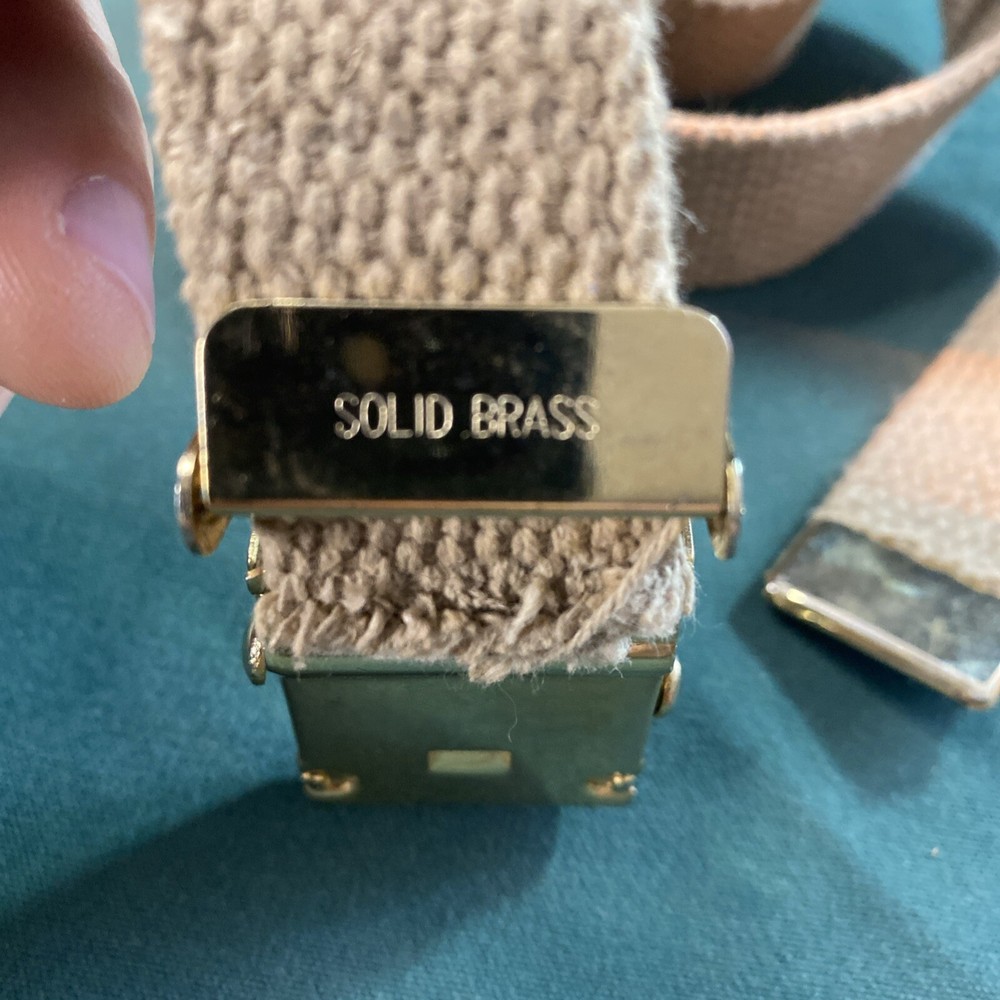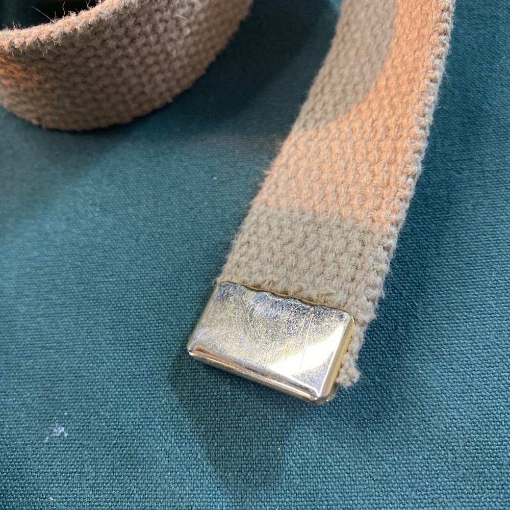 This belt is perfect for anyone looking for a vintage, military-style belt. The brown color and solid pattern make it a versatile addition to any outfit. The buckle is adjustable, allowing for a comfortable fit for all waist sizes. The belt is 1.25 inches wide and features both a braided and woven design, making it a unique piece. It is perfect for unisex adults and would make a great addition to any 80s-themed costume. This belt is not handmade and is not personalized.
