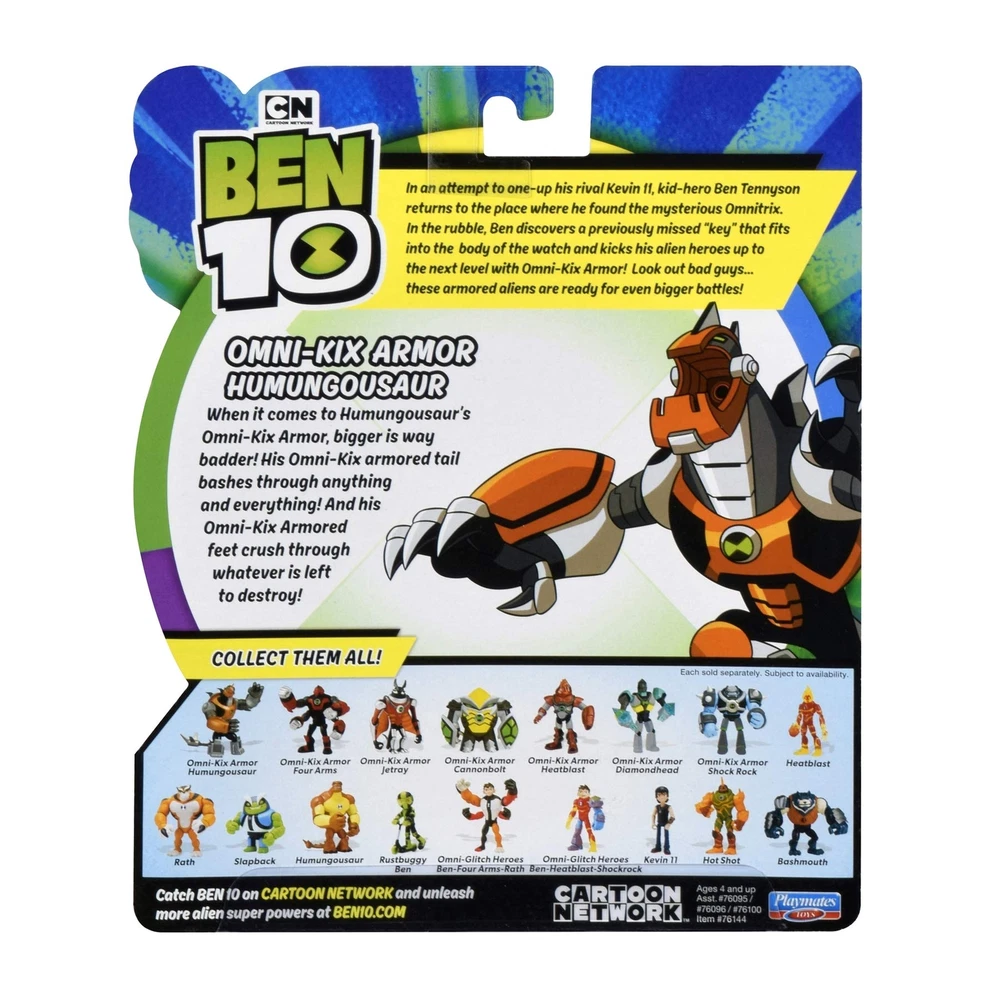Ben 10 Omni-Kix Armor Humungosaur Basic Figure When it comes to Humungousaur’s Omni-Kix Armor, bigger is way badder! His Omni-Kix armored tail bashes through anything and everything! And his Omni-Kix Armored feet crush through whatever is left to destroy! Highly detailed, uniquely sculpted and fully articulated action figure! Figures range in height from 4" to 5" Collect all Ben 10 aliens and other characters as seen on Cartoon Network's animated series! When it comes to Humungousaur’s Omni-Kix Armor, bigger is way badder! His Omni-Kix armored tail bashes through anything and everything! And his Omni-Kix Armored feet crush through whatever is left to destroy! Shipping We offer FREE shipping on all orders! We use a selection of shipping services such as UPS, FedEx, USPS etc. We only ship to the lower 48 states, no APO/FPO addresses or PO Boxes allowed. Local pickups and combined shipping options are not provided at this time. Return You can return a product for up to 30 days from the date you purchased it. Any product you return must be in the same condition you received it and in the original packaging. Please keep the receipt. Payment We accept payment by any of the following methods: PayPal Please pay as soon as possible after winning an auction, as that will allow us to post your item to you sooner! Feedback Customer satisfaction is very important to us. If you have any problem with your order, please contact us and we will do our best to make you satisfied. Contact Us If you have any queries, please contact us via ebay. We usually respond within 24 hours on weekdays. Please visit our eBay store to check out other items for sale! Thank you for shopping at our store.