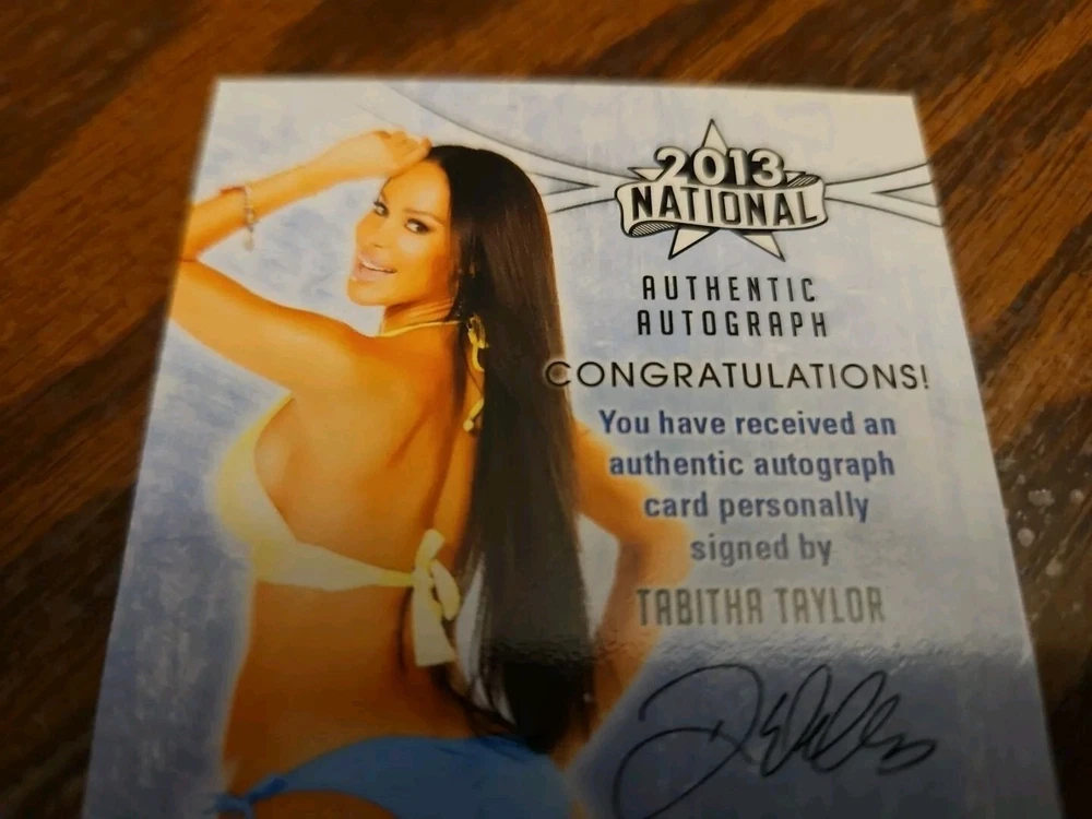Benchwarmer 2013 Tabitha Taylor National Autograph Pink Foil Card #4/4 40th National 2019 Auto Playboy Super Rare card with limited run of only 4. Currently the only one on eBay. Tabitha Taylor, the actress and model, is the new GoDaddy Girl, playing the "perfect body" for actress/comedian Joan Rivers, in the national ad campaign launched during the Superbowl. She has an extensive resume ranging from commercial campaigns for Dodge, Sony Playstation, Miller Lite, Comcast, and many more, to big budget features like "Dude, Where's My Car?", "Lake View Terrace", "Dirty Love", "Loaded", as well as many independent films. Her television appearances are no less impressive including starring roles in such shows as "Nip Tuck", "Southland", "Entourage", "Monk", "Beauty and the Geek", "The Best Damn Sports Show", and a long list of credits, even starring in music videos, like her role as the villain for Shakira's "Obsession Tango" hit. Tabitha is a Hawaiian native beauty, and grew up in the Los Angeles area with her parents and two sisters. Living so close to Hollywood, she was bitten by the acting bug early and studied extensively to live out her passion and dreams. Her comedic side, timing, and true natural talent, gives her the ability to transform into any role and add depth to any character, whether it be drama or comedy. Tabitha is also a successful model, but acting is certainly her first desire and focus. She has been featured in a variety of publications including Playboy, Maxim, FHM, American Curves, Muscular Development, and countless others. Her love for the craft is matched only by her hard work and dedication to give every project and producer, their true vision. She has an extensive resume in television, film, and commercials, and looks forward to building her talent, credits, and life experiences throughout her chosen career. Whether in her chosen profession of acting, or her personal life of fitness and animal rights activism, Tabitha Taylor is following the footsteps of her idol Marilyn Monroe. Her motto is simple: A strong work ethic, passion for what you love, and kindness along the way, is a life fully lived. Please, look at all the pictures. Please check out my other eBay accounts... https://www.ebay.com/usr/kimmyrael https://www.ebay.com/usr/matlac99 https://www.ebay.com/usr/lacr6837 https://www.ebay.com/usr/malac9440 https://www.ebay.com/usr/lacr_3567 https://www.ebay.com/usr/lacroki8 https://www.ebay.com/usr/lacroki9 Shipping only to the continental US unless you contact me first. Will combine shipping!!!