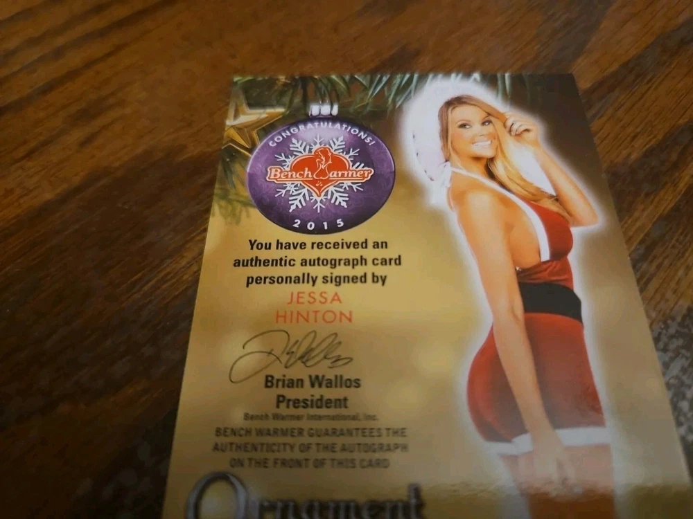 Benchwarmer 2015 Jessa Hinton Happy Holidays Ornament Signatures Autograph Card Playboy CyberGirl Please, look at all the pictures. Please check out my other eBay accounts... https://www.ebay.com/usr/kimmyrael https://www.ebay.com/usr/matlac99 https://www.ebay.com/usr/lacr6837 https://www.ebay.com/usr/malac9440 https://www.ebay.com/usr/lacr_3567 https://www.ebay.com/usr/lacroki8 https://www.ebay.com/usr/lacroki9 Shipping only to the continental US unless you contact me first. Will combine shipping!!!