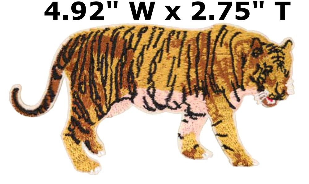 Bengal Tiger Patch Embroidered Iron-on Applique Roaring Big Cat Wild Animals